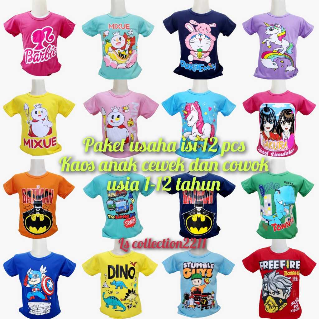[Mall] PAKET USAHA ISI 12 PCS//KAOS ANAK LAKI LAKI //KAOS ANAK PEREMPUAN 1-12 TAHUN//GROSIR KAOS ANAK WARNA MOTIF RANDOM