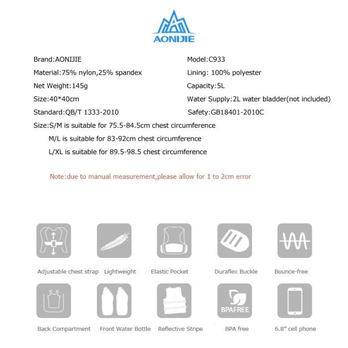 Tas Olahraga Aonijie C933 Backpack Vest Tas Rompi Punggung Olah Raga Running Hiking Camping Lari Climbing Trail Sport Ou