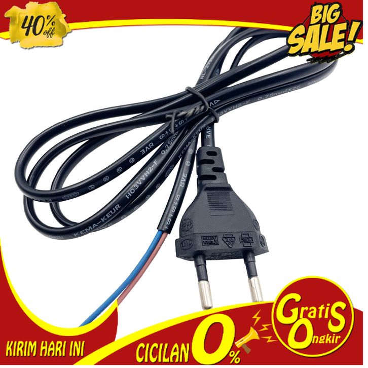 -KABEL POWER / KABEL SNI AC 220V 1.5M 2x0.5 / KABEL BUNTUNG / KABEL LISTRIK Kabel Sambungan + Colokan Listrik