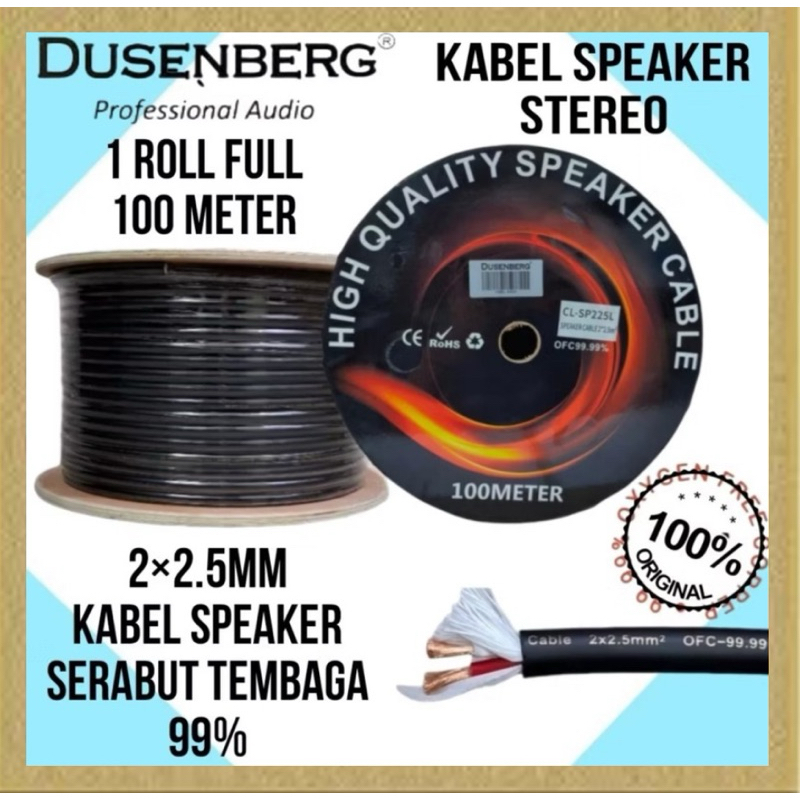 Kabel Speaker, Kabel Audio Stereo Tembaga 99% ,1 Roll Full 100 Meter DUSENBERG 2×2.5mm Kabel Serabut Speaker Karaoke Ori
