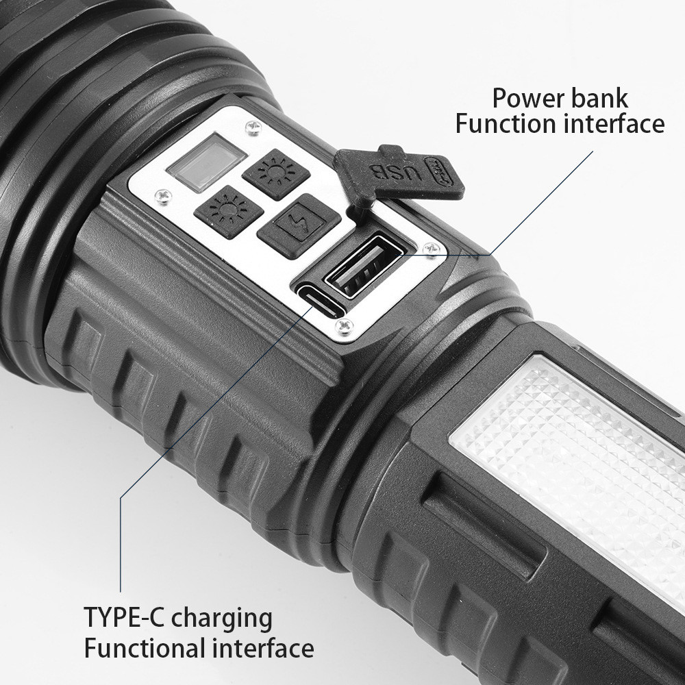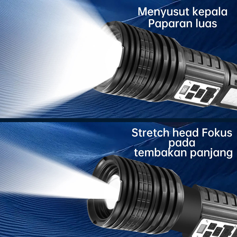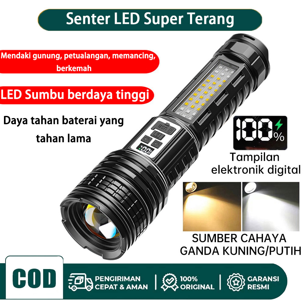 Senter LED Super Terang Dua Warna 100000 Lumens 14 Light Mode Senter Zoom Berdaya Tinggi Jarak Jauh Anti Air Senter LED