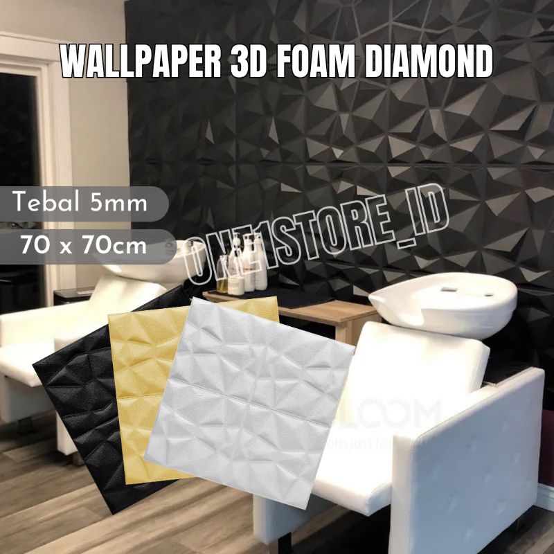 Wallpaper Dinding 3D Foam Tekstur Diamond Dekorasi Dinding 70 x 70cm