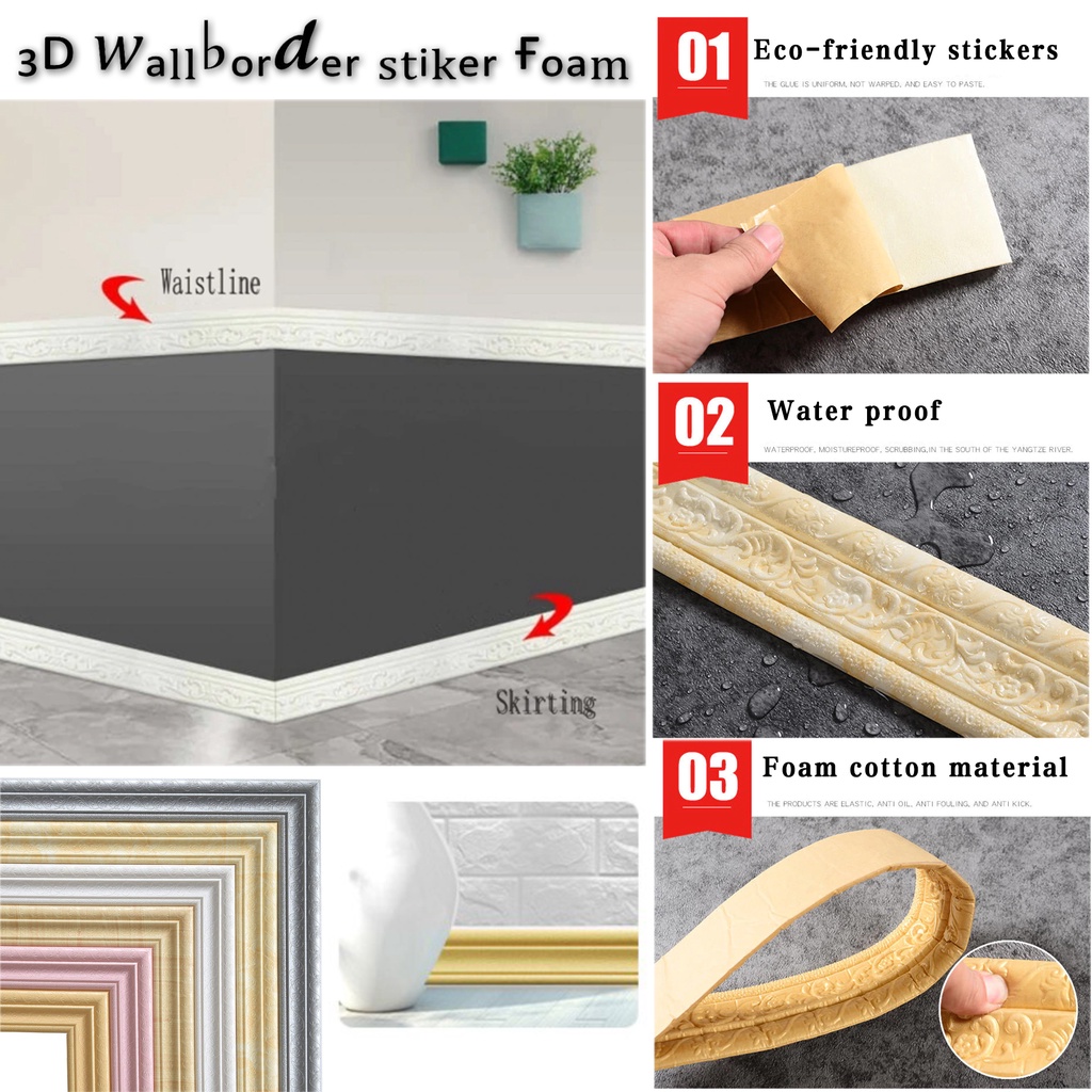 (KIM) Foam Wall Borders Sudut Wallpaper Bingkai Foam 3D Motif Bunga Dekorasi Rumah