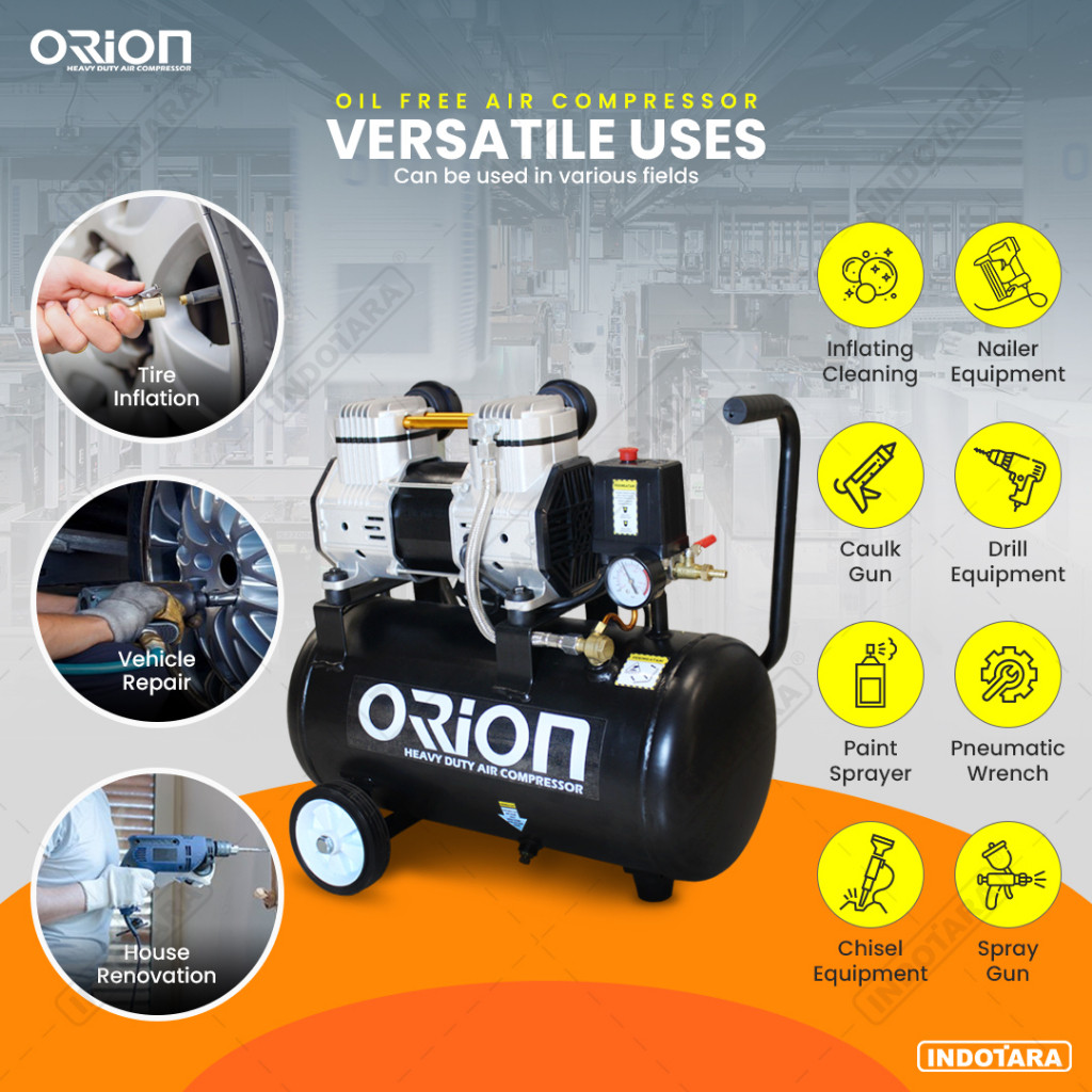 Kompresor Angin Oil Free 1 HP 24L Air Compressor Orion DC100F