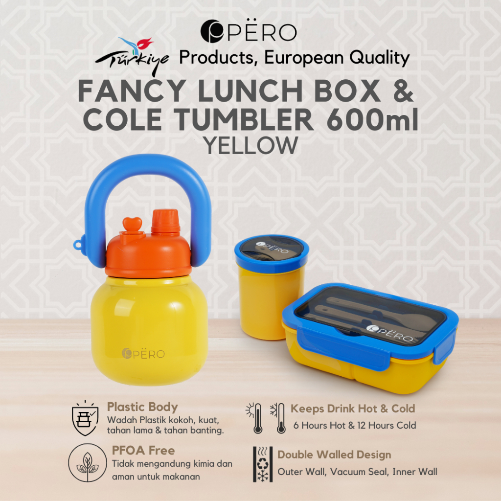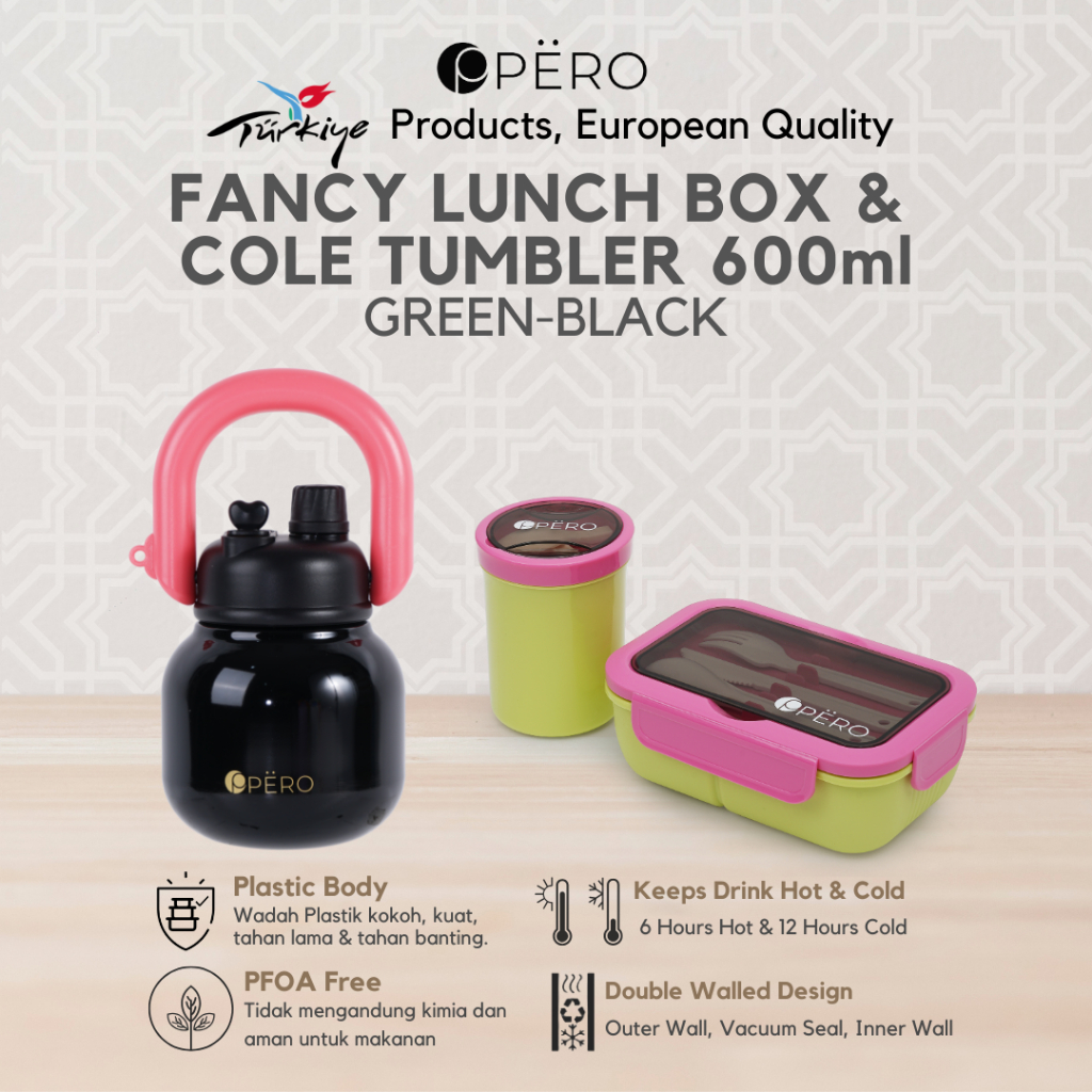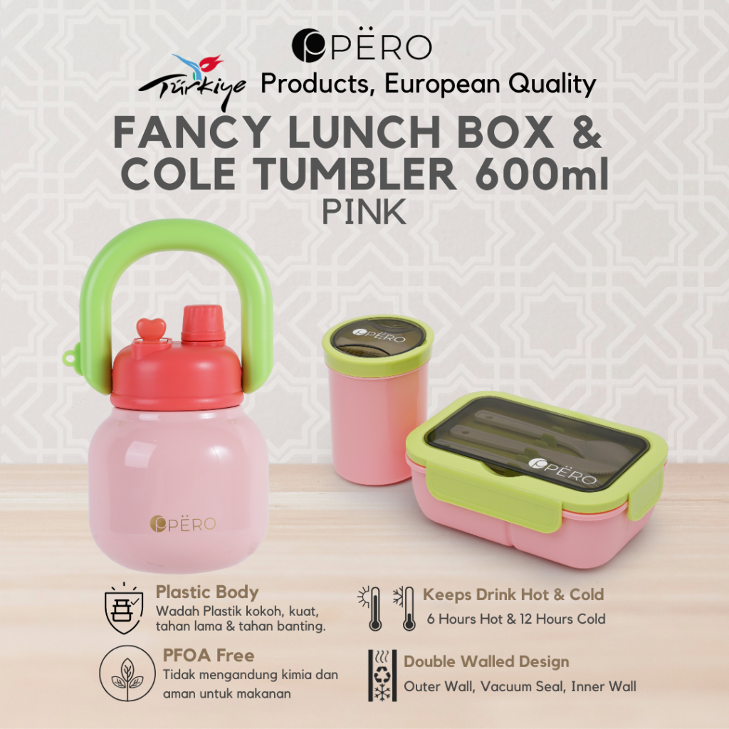 [Mall] PERO SET OF 2 LUNCH BOX FANCY WITH 2IN1 SOUP CONTAINER & PERMOS COLE TUMBLER 600ML / BUNDLING TUMBLER DAN TEMPAT MAKAN A