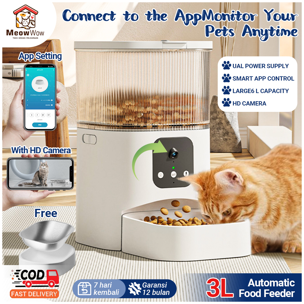 ME Automatic Pet Feeder 6L video APP Dispenser Makanan Otomatis Anjing Kucing Control Timing Set