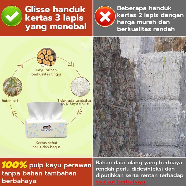 Glisse Tisu Wajah Lembut 360 Lembar 3 Lapis / Tisu Wajah Lembut / Tisu Wajah untuk Bayi dan Rumah Tangga, Harga Murah /