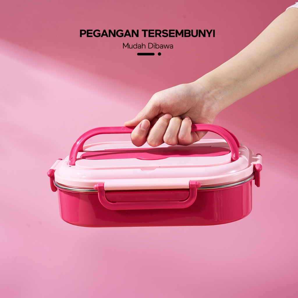 [Mall] 【MERAH MUDA 304】ECENTIO LUNCH BOX STAINLESS 304 ECENTIO LUNCH BOX 1200ML STAINLESS 304 SEKAT 4 DAN ANTI TUMPAH FREE SEND