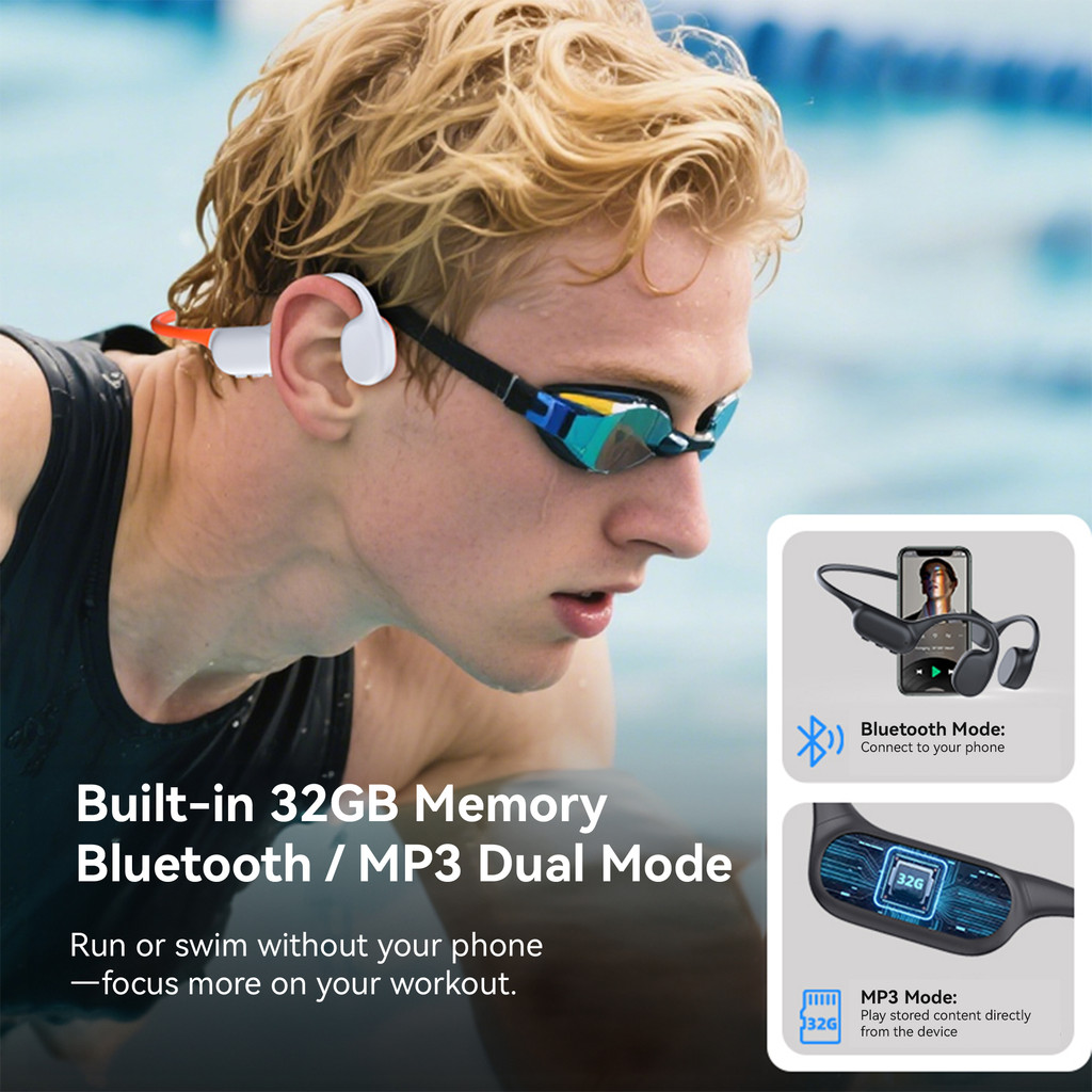 KiiP DTS11 Bone Conduction IPX8 Headset Bluetooth Open Ear Renang Gym With Memory 32GB