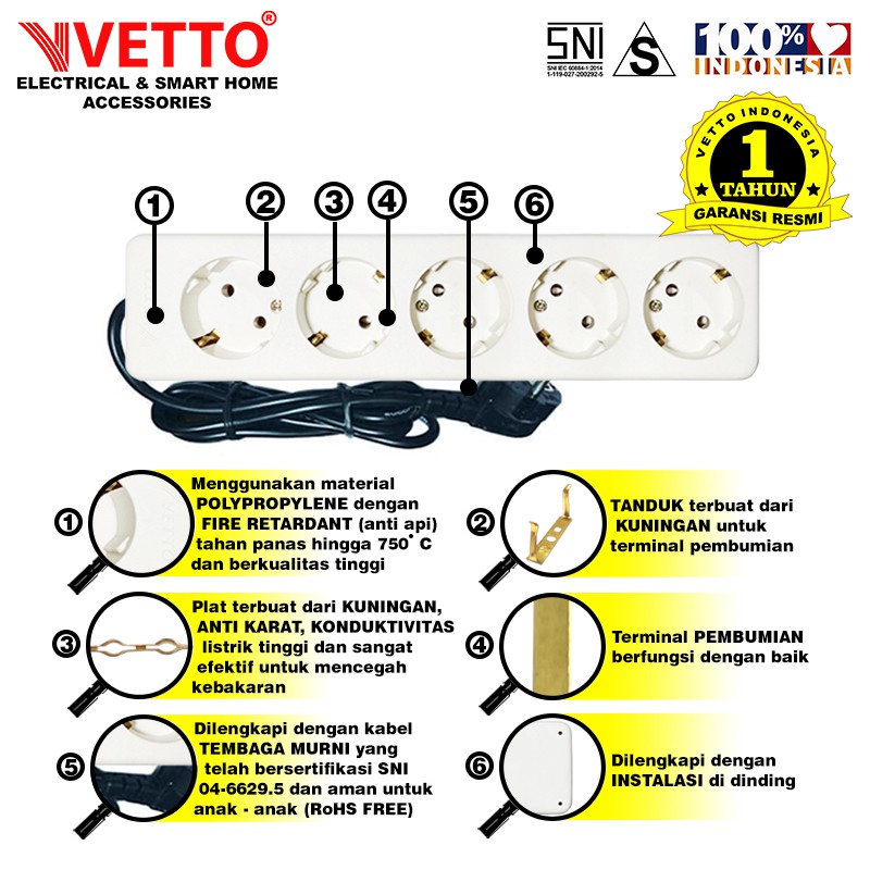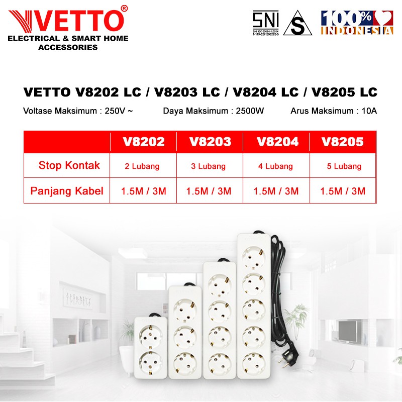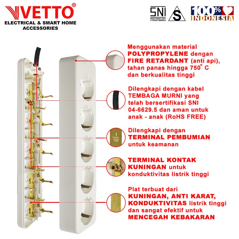 VETTO V8205/LC Stop Kontak 5 Lubang SNI