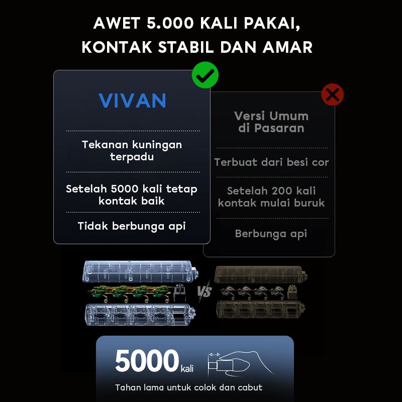 VIVAN Safety Socket VPS Series Stop Kontak Saklar 3 - 6 Slot Kabel Inti Tembaga Murni Plastik Tahan Api Child Lock 3 Met