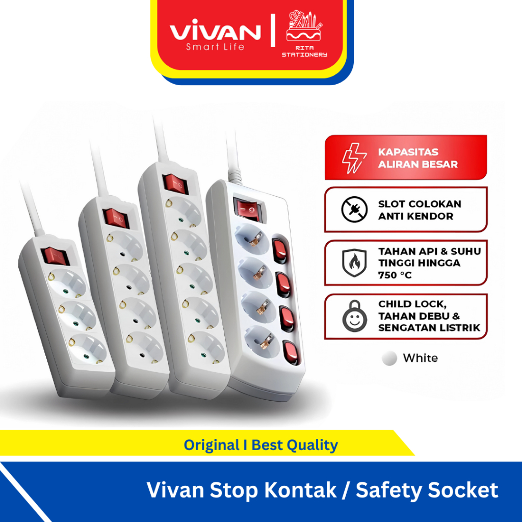 Vivan Colokan / Terminal / Safety Socket Kabel 3 4 5 Slot Putih Aman Untuk Anak Murah 1.6 / 3 Meter- 1 Saklar