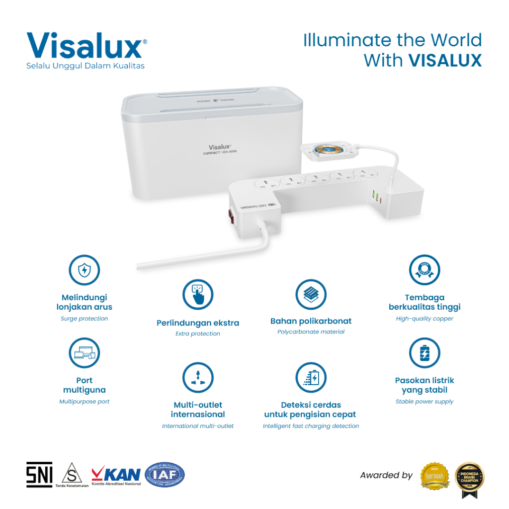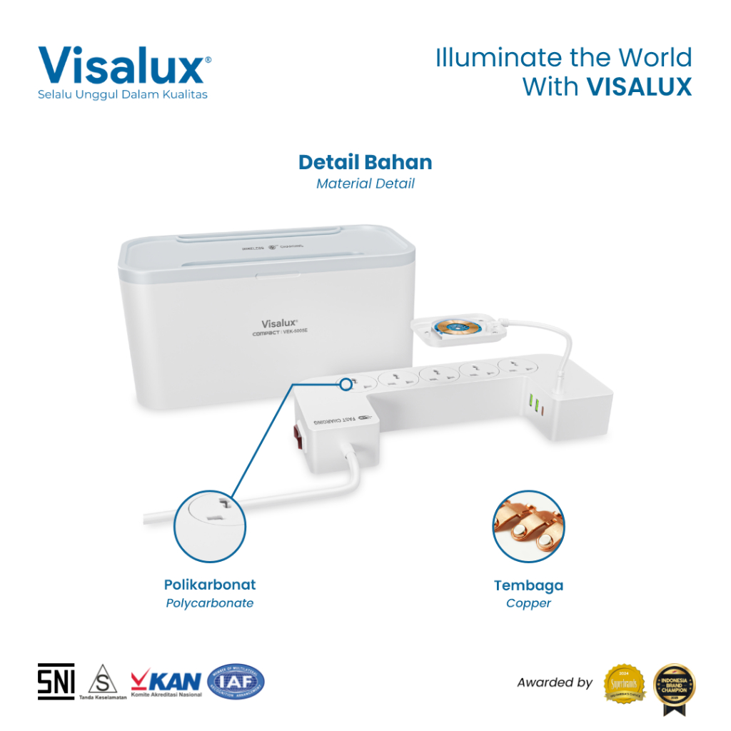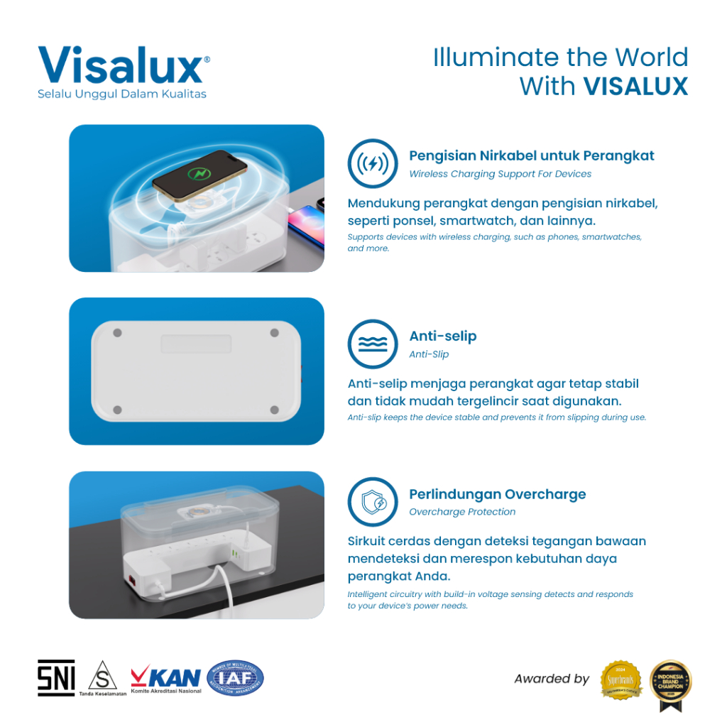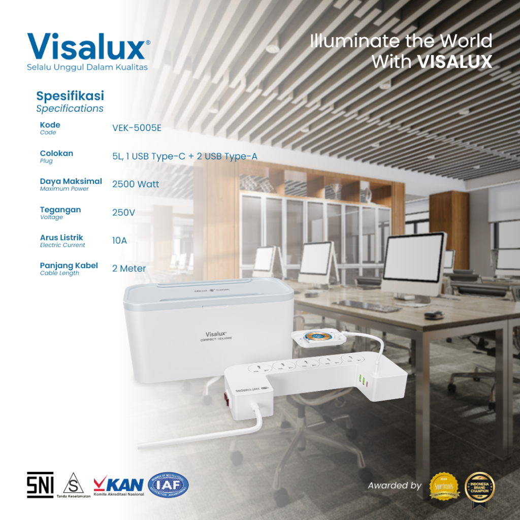 Visalux Kabel Extension Compact (2 Pin) - 5L + Type C + USB A Fast Charging Wireless Charging (Stop Kontak 5 Lubang Colo