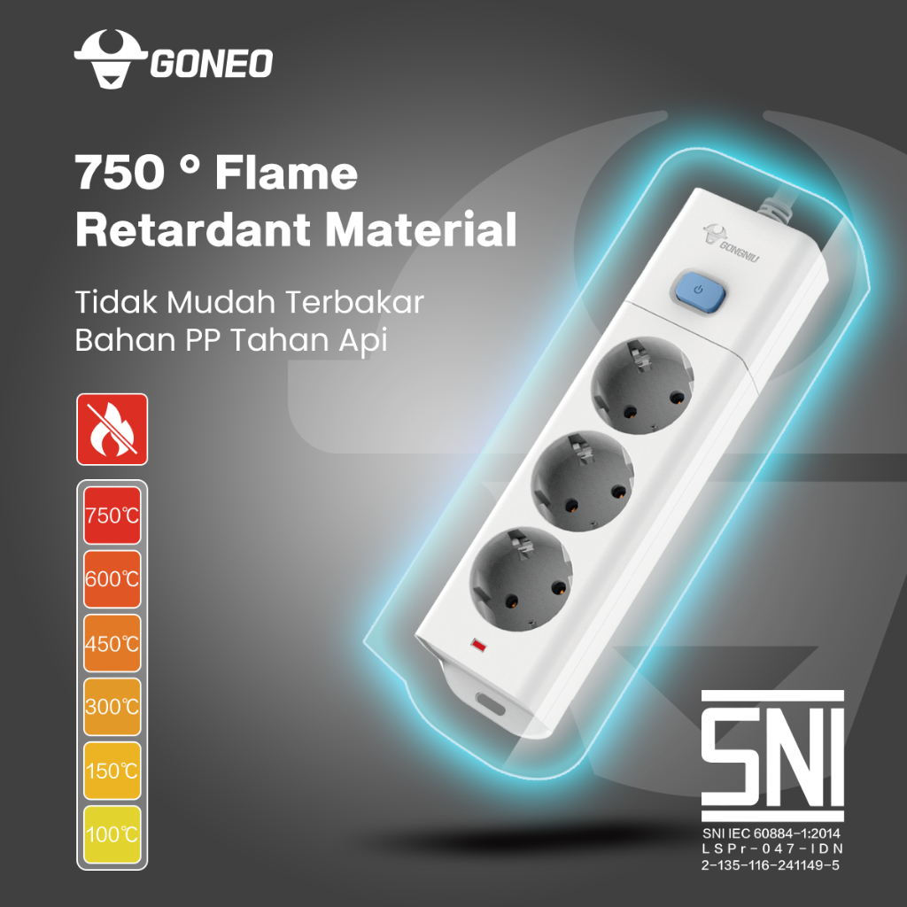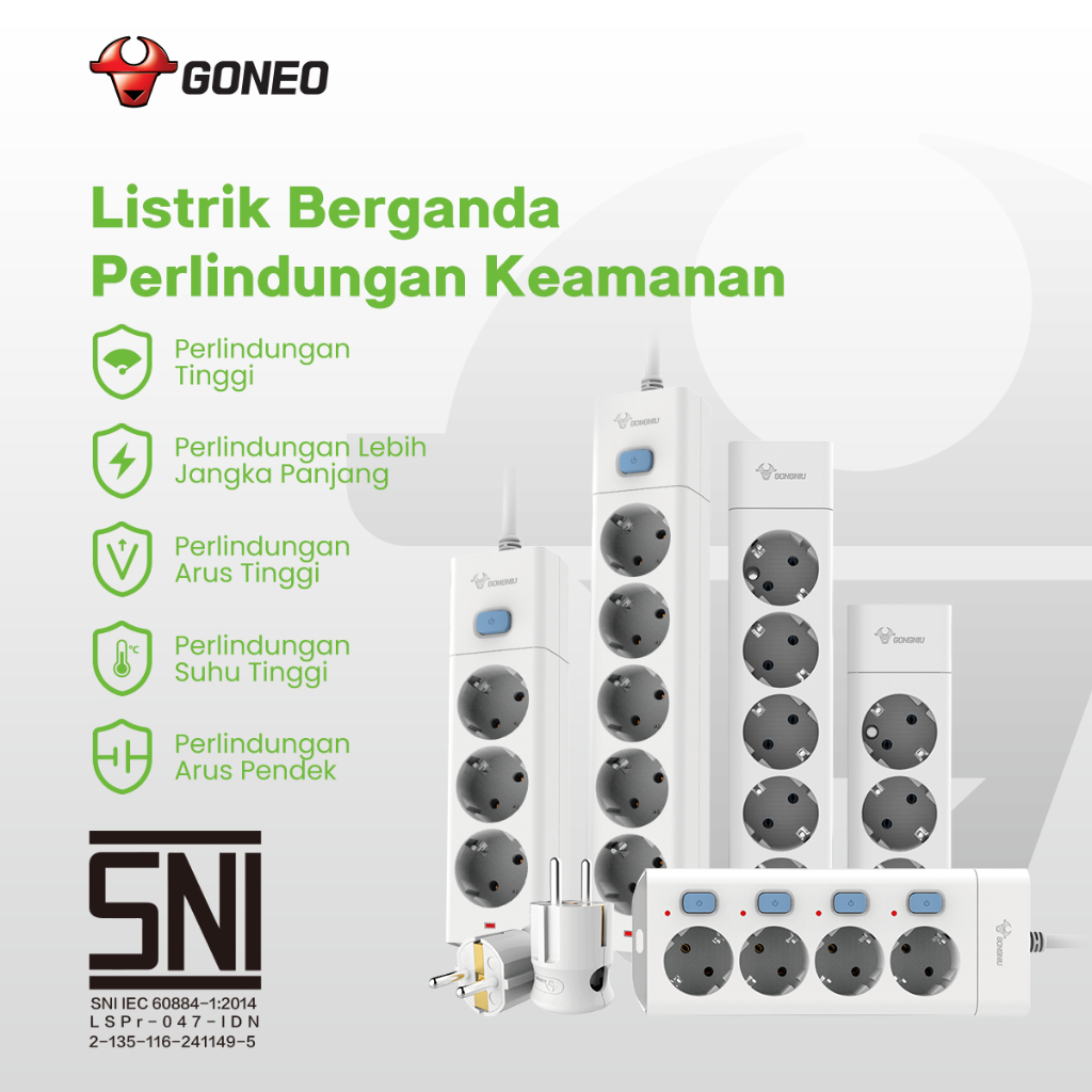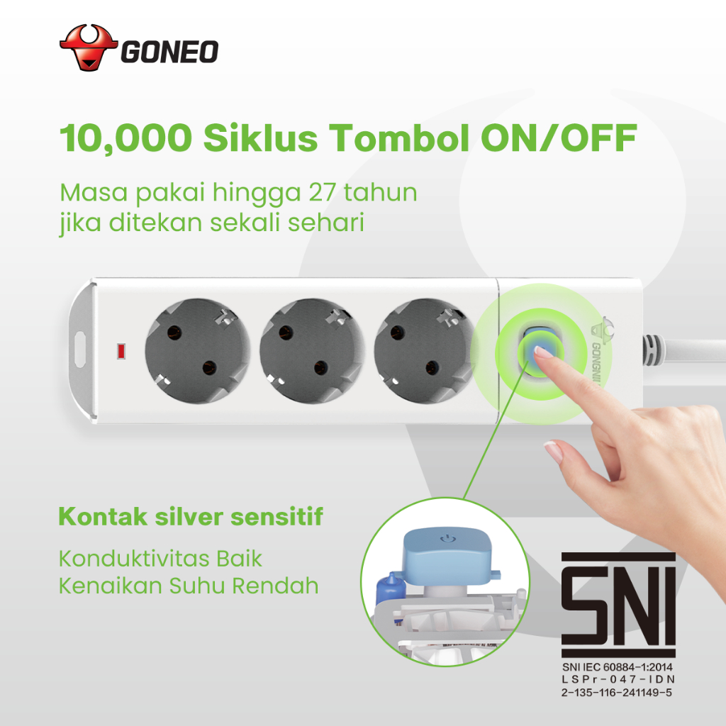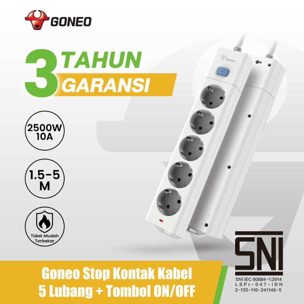 GONEO - G1050 Stop Kontak Saklar On Off Panjang 1,5/3/5 Meter 5 Lubang Terminal Kuningan Anti Petir SNI Gongniu