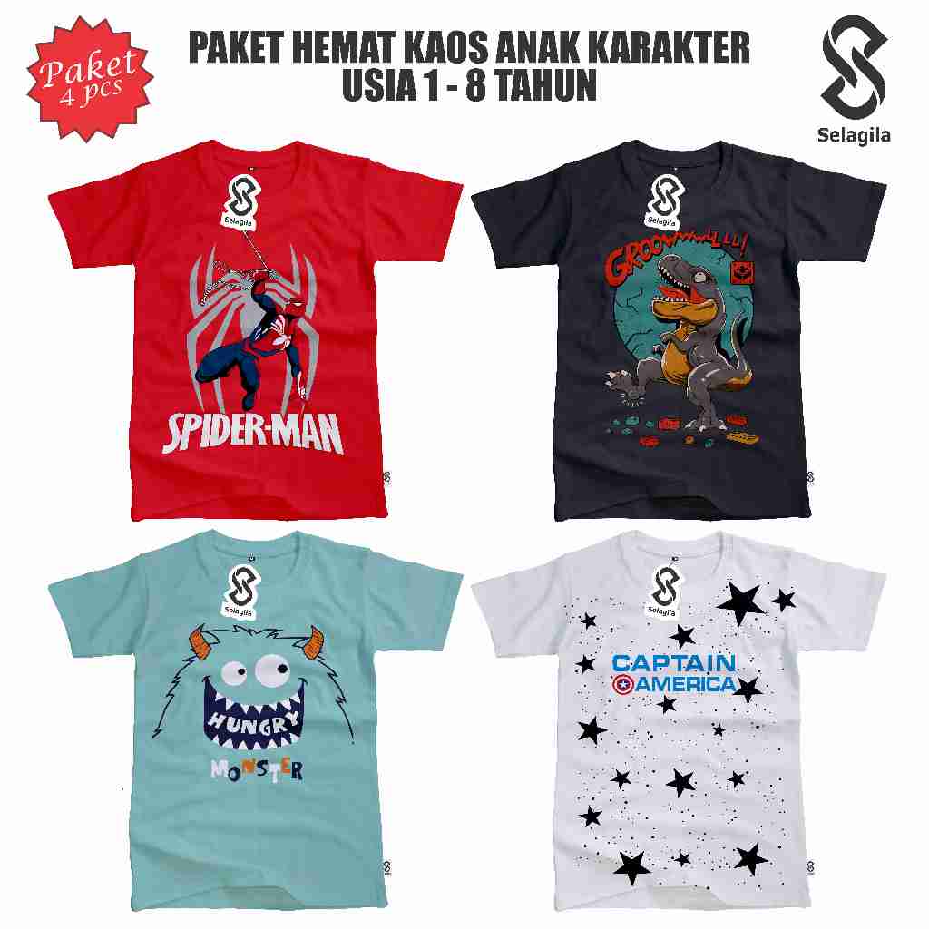 [Mall] SELAGILA PAKET HEMAT KAOS ANAK KARAKTER COWOK USIA 1-8 TAHUN