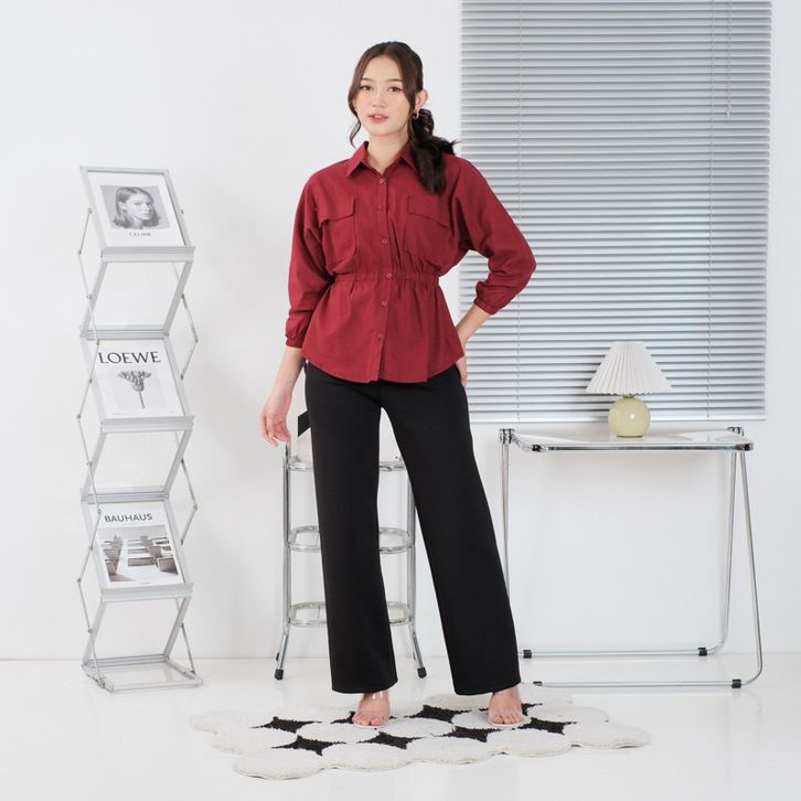 Baju Wanita Terbaru Kekinian Baju Atasan Wanita Korean Style Beena Shirt Linen Model Kerut Bagian Perut