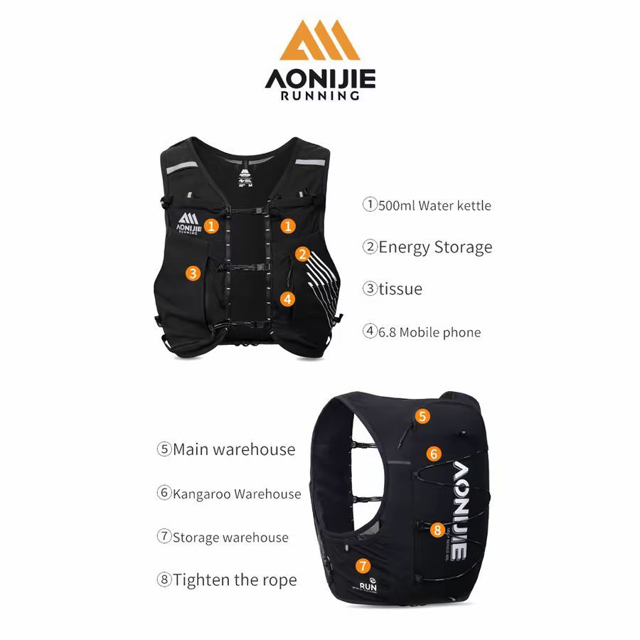 Aonijie C9116 Hydration Backpack Vest - 10L Trail Running - BLACK