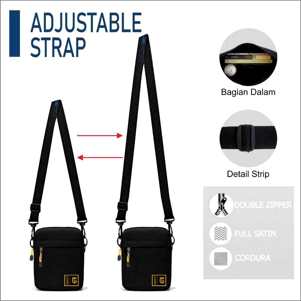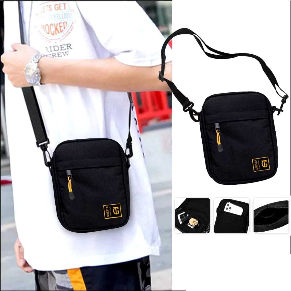 GRESTA - TAS SELEMPANG SLINGBAG HITAM POLOS..