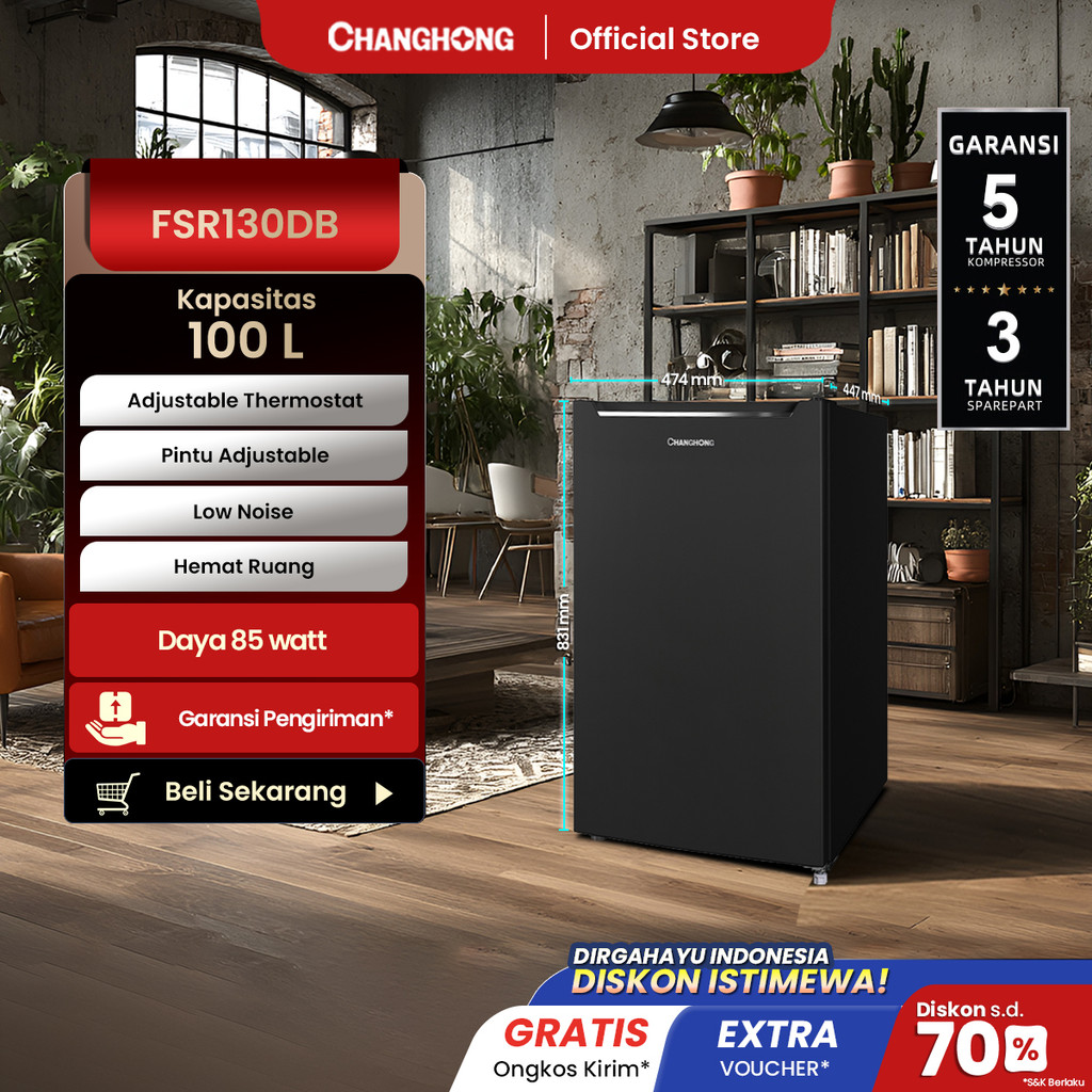 New Changhong Kulkas 1 pintu (Refrigerator) Lemari Es Kapasitas 100 Liter – FSR130DB from CBC100