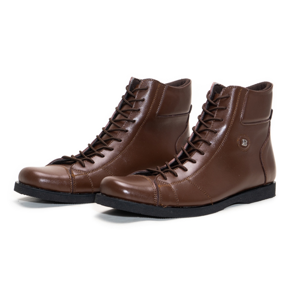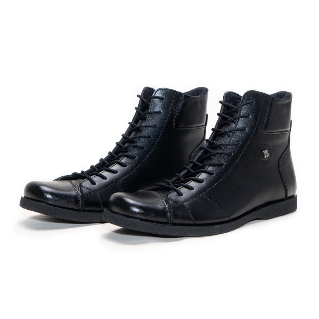 Sepatu Boots Pria Kulit Asli Original Hitam Semi Formal Model Tali 10 Hole BLY3013