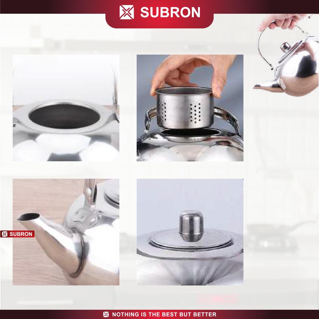 SUBRON Teko Stainless Bulat 1.2L 1.6L 2.2 Liter Tea Pot Air Panas Teh Kapasitas Besar Banyak