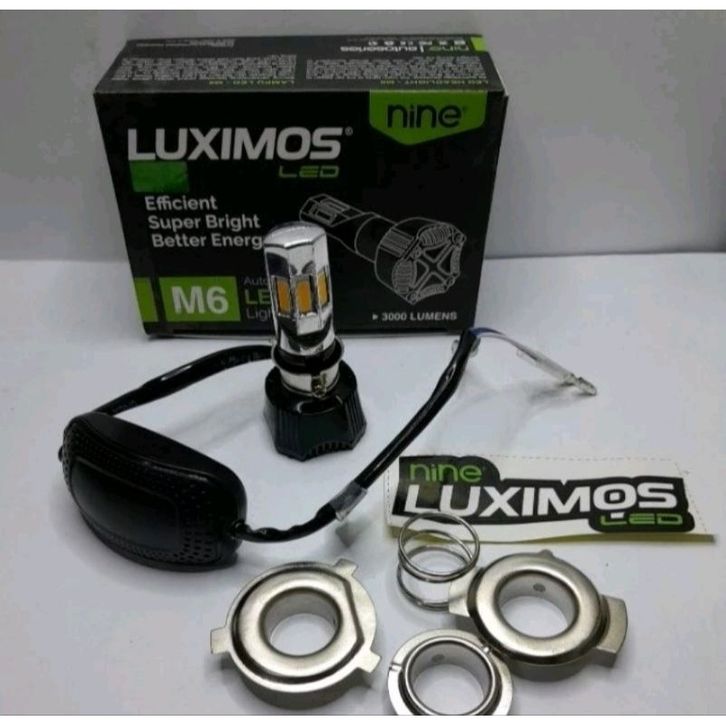 LAMPU LED DEPAN MOTOR H4 H6 NINE LUXIMOS M6 AC DC 6 SISI 36WAT SUPER TERANG PUTIH KUNING
