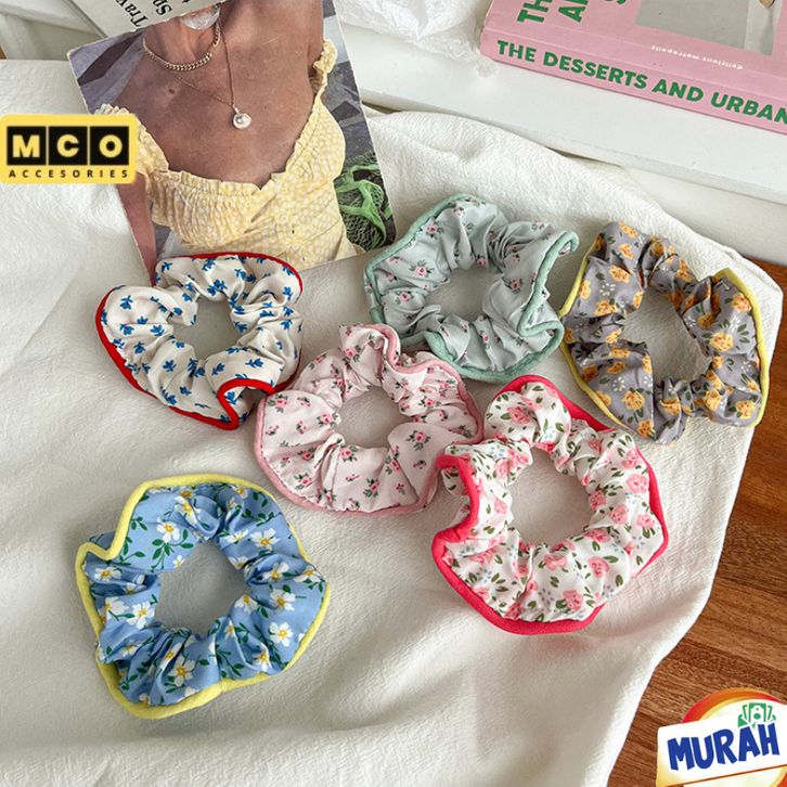 Scrunchie Ikat Rambut Wanita Motif Bunga Karet Rambut Fashion Korea MCO AR195