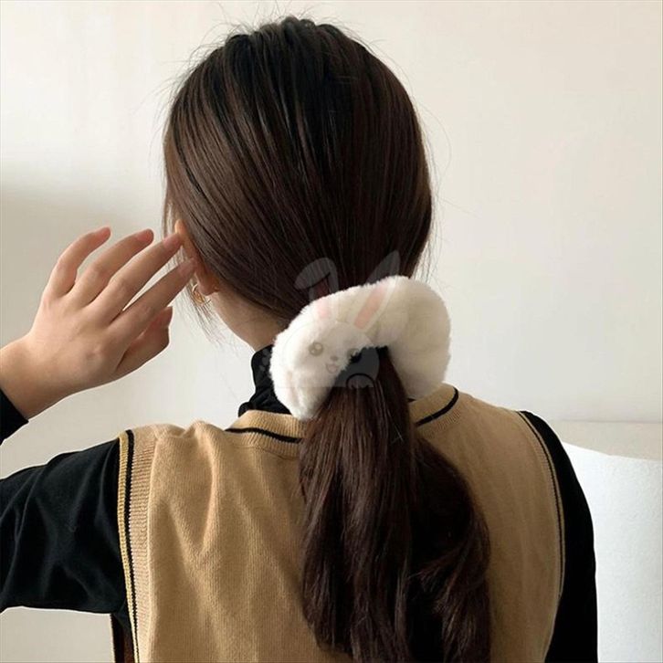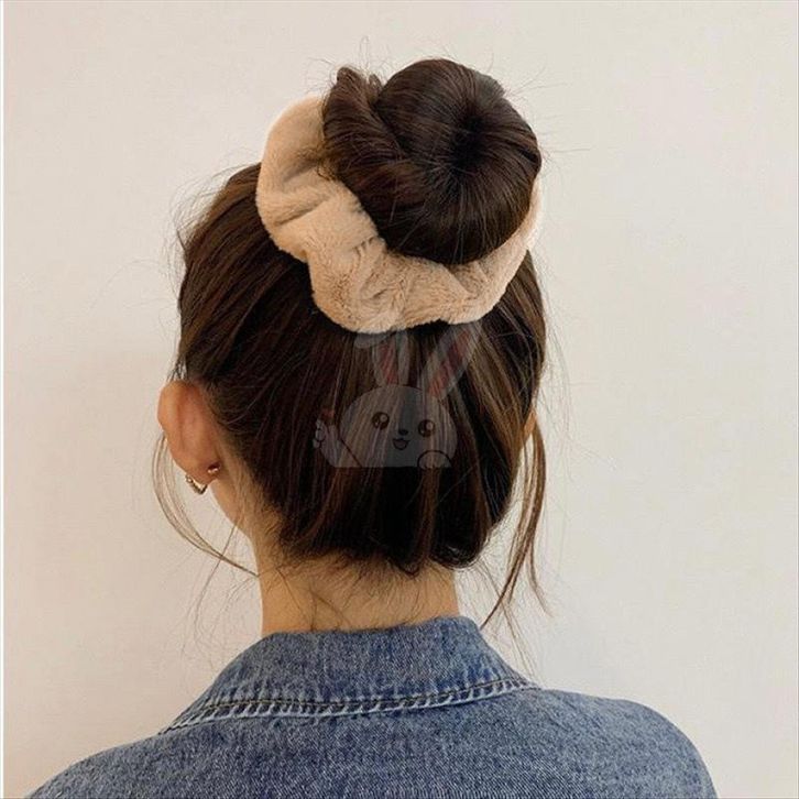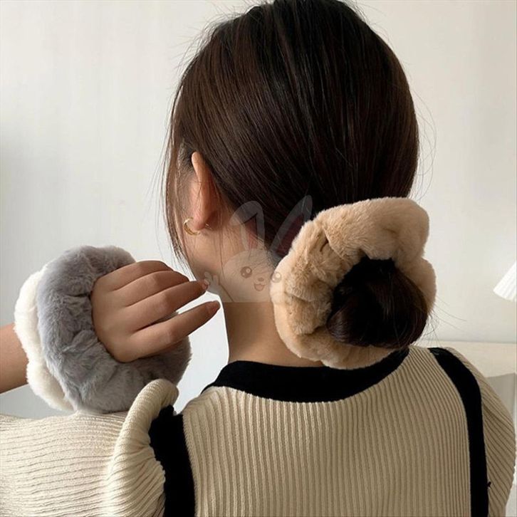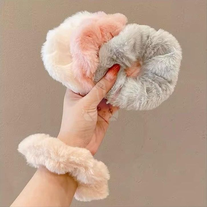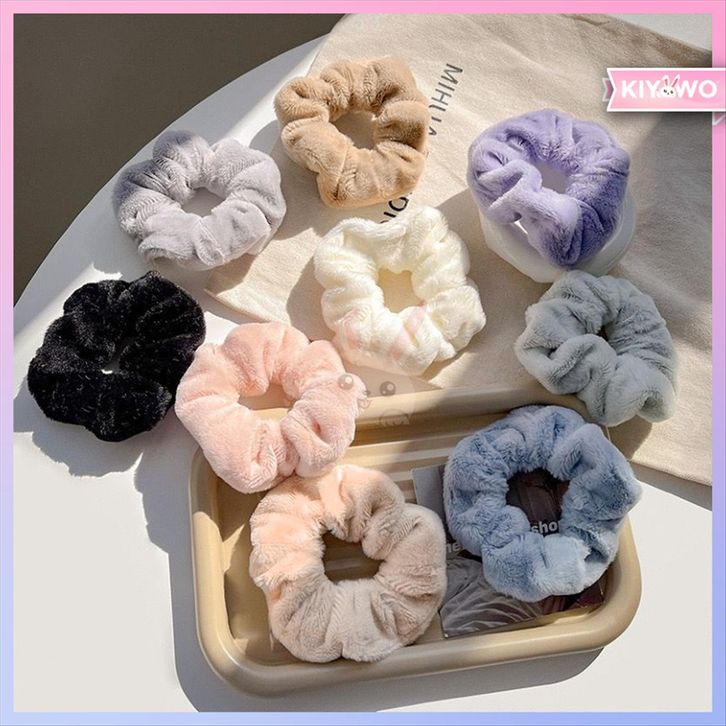 KIYOWO Ikat Rambut Scrunchie Bulu Lembut Motif Polos Hairband Lingkar Kunciran Cincin Besar Gaya Fashion Korea Import