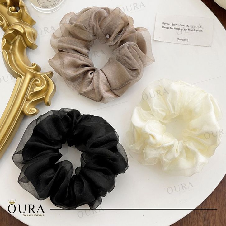 Scrunchie Korea Jumbo Double Kain Tile Aesthetic Kunciran Rambut Elegan Wanita Premium Hairband