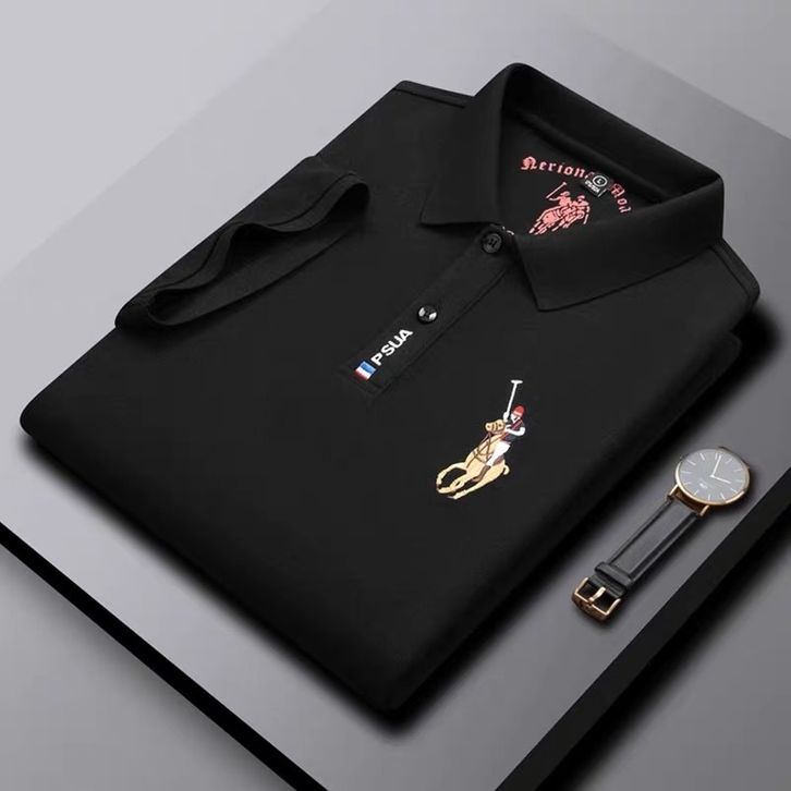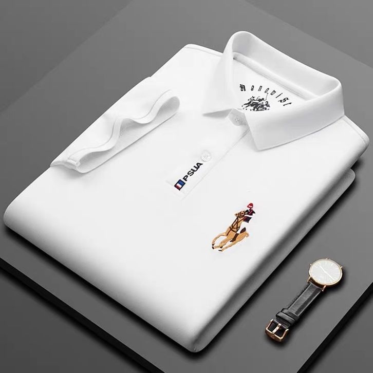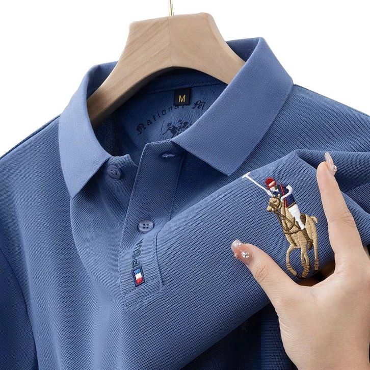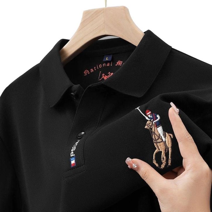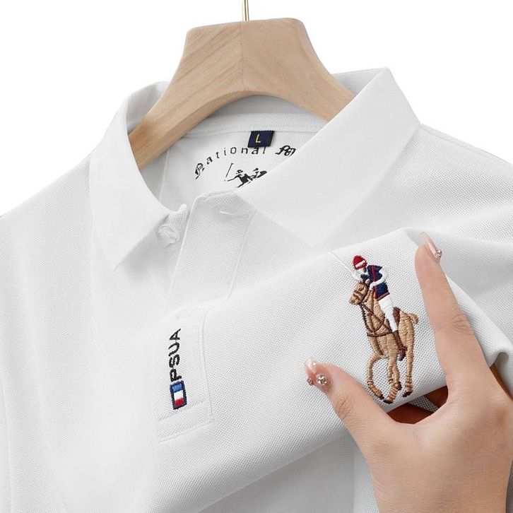 EKSKLUSIF Polo Shirt Pria Kemeja polo kasual bisnis bordir katun murni baru untuk pria dengan kaos kerah v neck