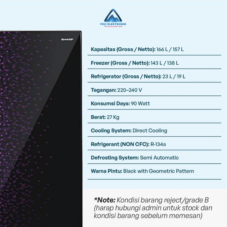 PROMO Sharp Kulkas SJ-X185MG-GB/GR Magne Glass SHINE Freezer Jumbo Hemat Energi LED Semi Defrost ORIGINAL