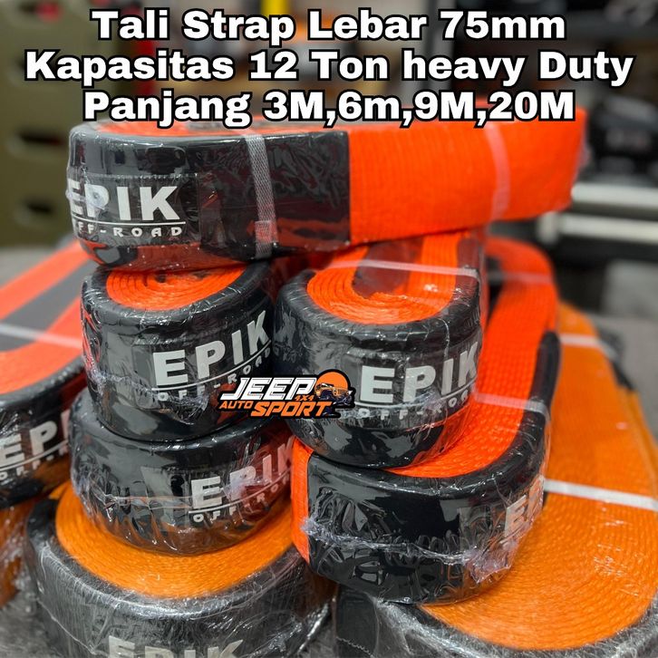 Tali Strap Offroad 9 meter kapasitas 12 Ton heavy duty Lebar 7,5cm