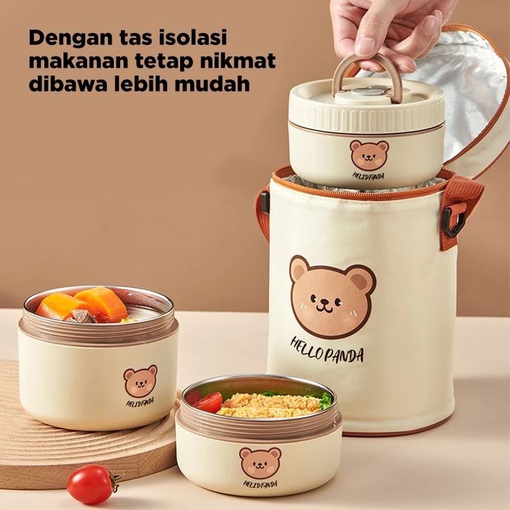 Megam Tempat Bekal Anak Karakter Beruang Lucu Kotak Makan Siang Stainless Steel Tahan Panas + Bag Lunch Box HMB108B