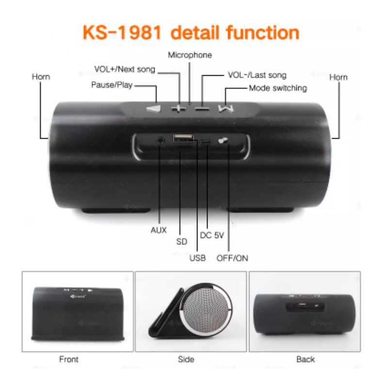 KISONLI - Speaker Portable Bluetooth Mobile Stand KS1981 Support FM, TF, USB, AUX