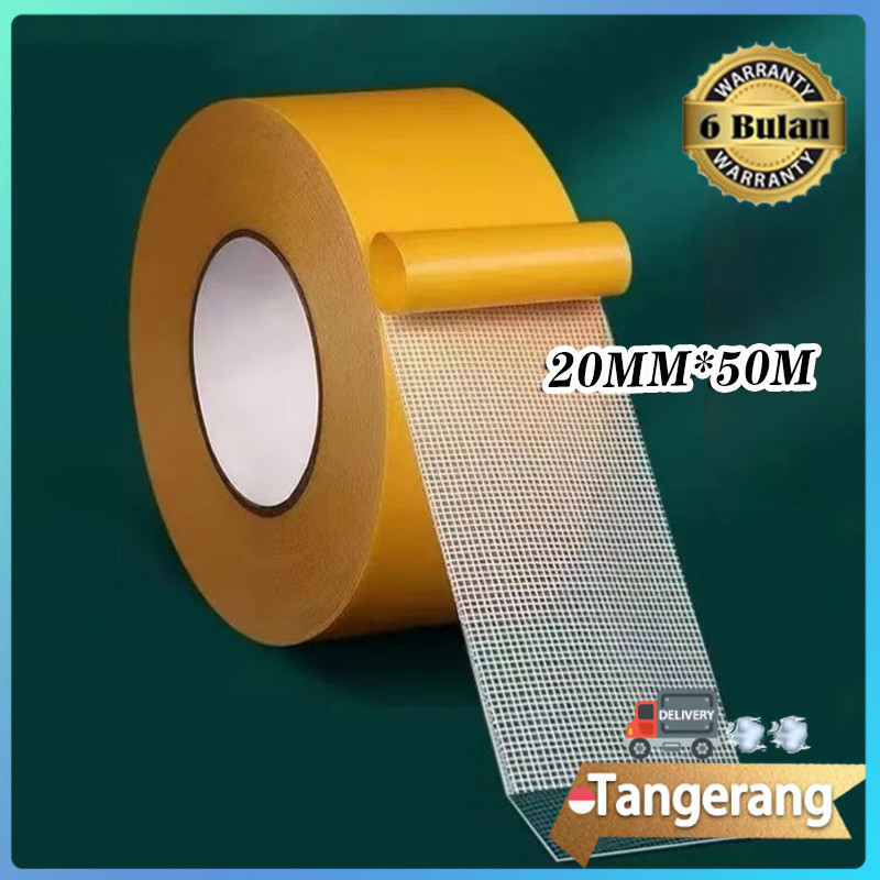 50m Lakban Double Tape Super Kuat Grid Super Lengket Lebar 20mm/30mm