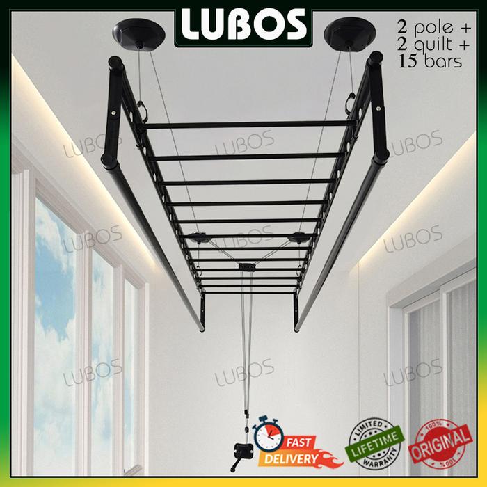 LUBOS 2.4M 19 PIPA TIANG JEMURAN BAJU LAUNDRY GANTUNG LIFTING PLAFON ATAP MINIMALIS DRYING RACK WITH SMALL BARS STAINLESS