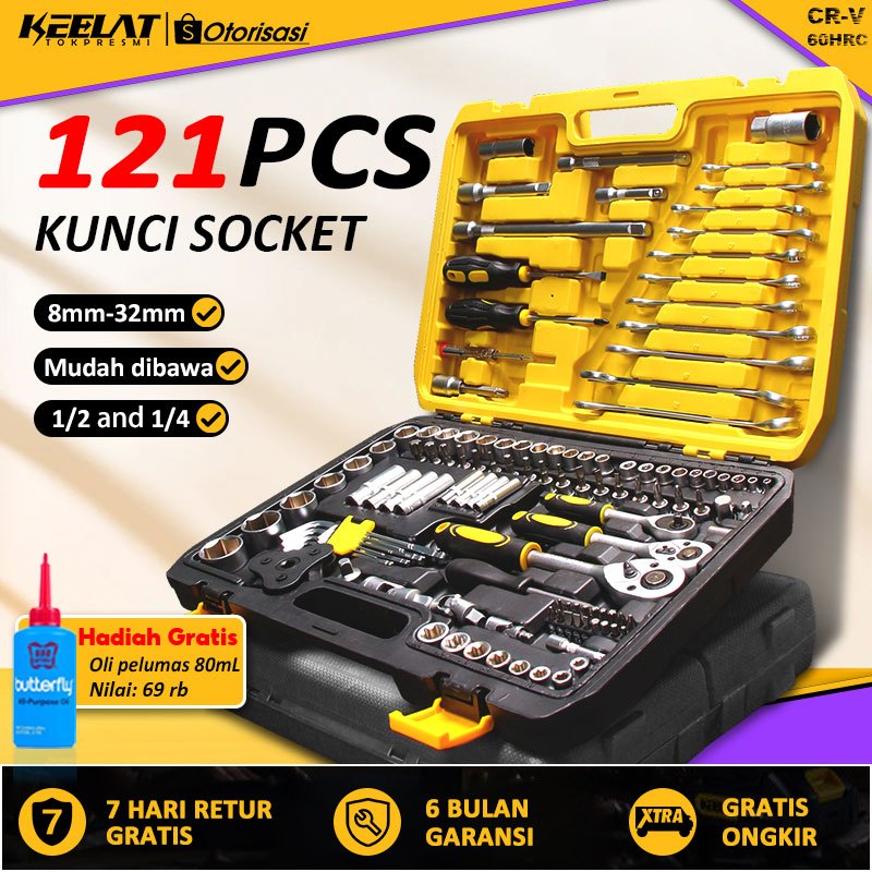 Kunci Sok Set 121Pcs【60HRC】Socket Full Lengkap Socket Tool Kit Pas Ring Motor Kunci Socket Wrench Pas Sok Shock
