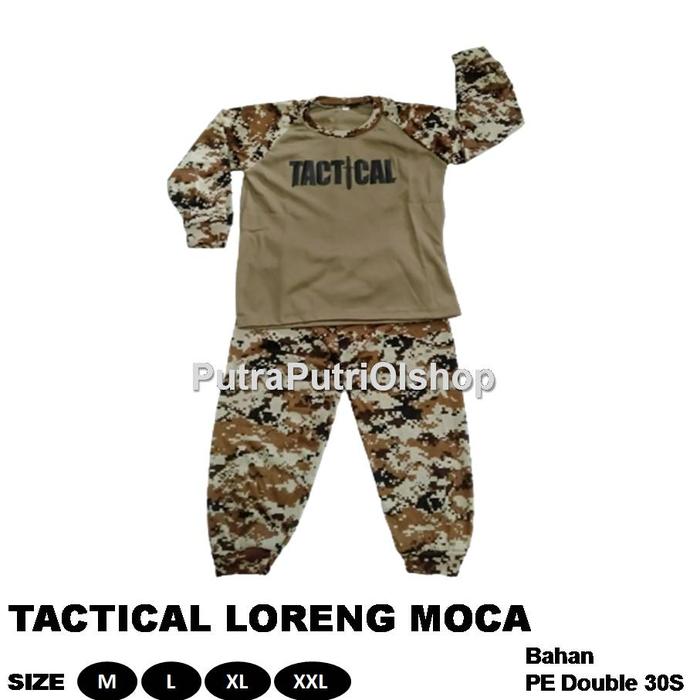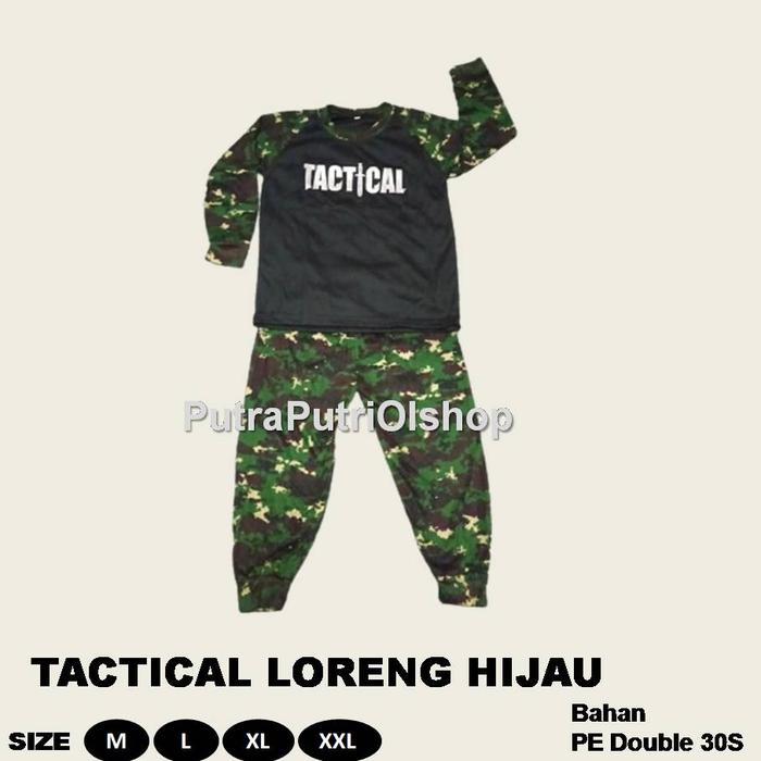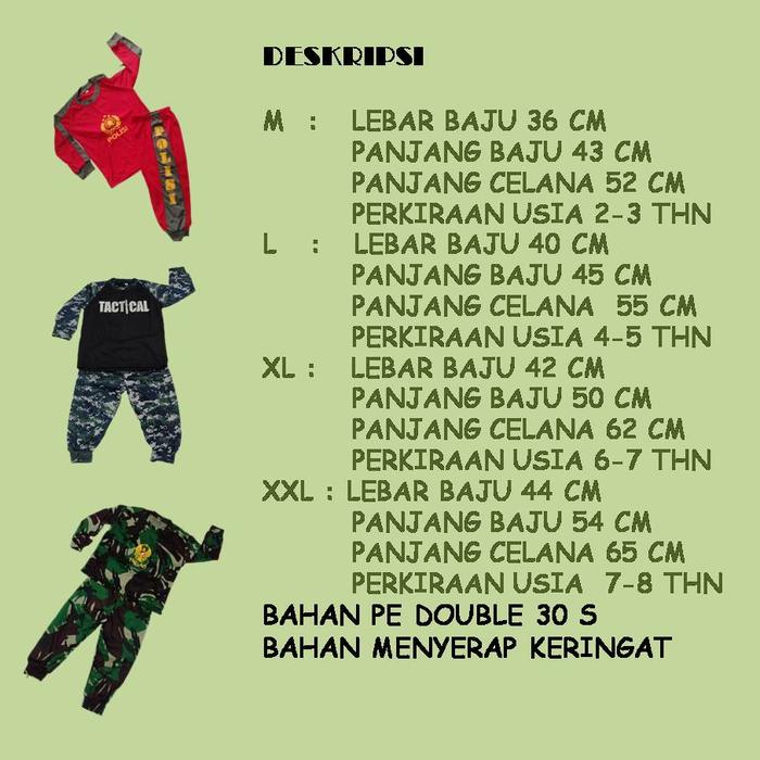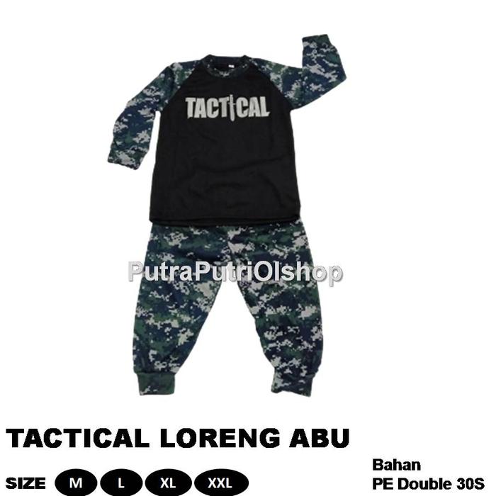 SETELAN BAJU KAOS ANAK LORENG TACTICAL TNI POLISI BAHAN PE DOUBLE 30S - ABU, M