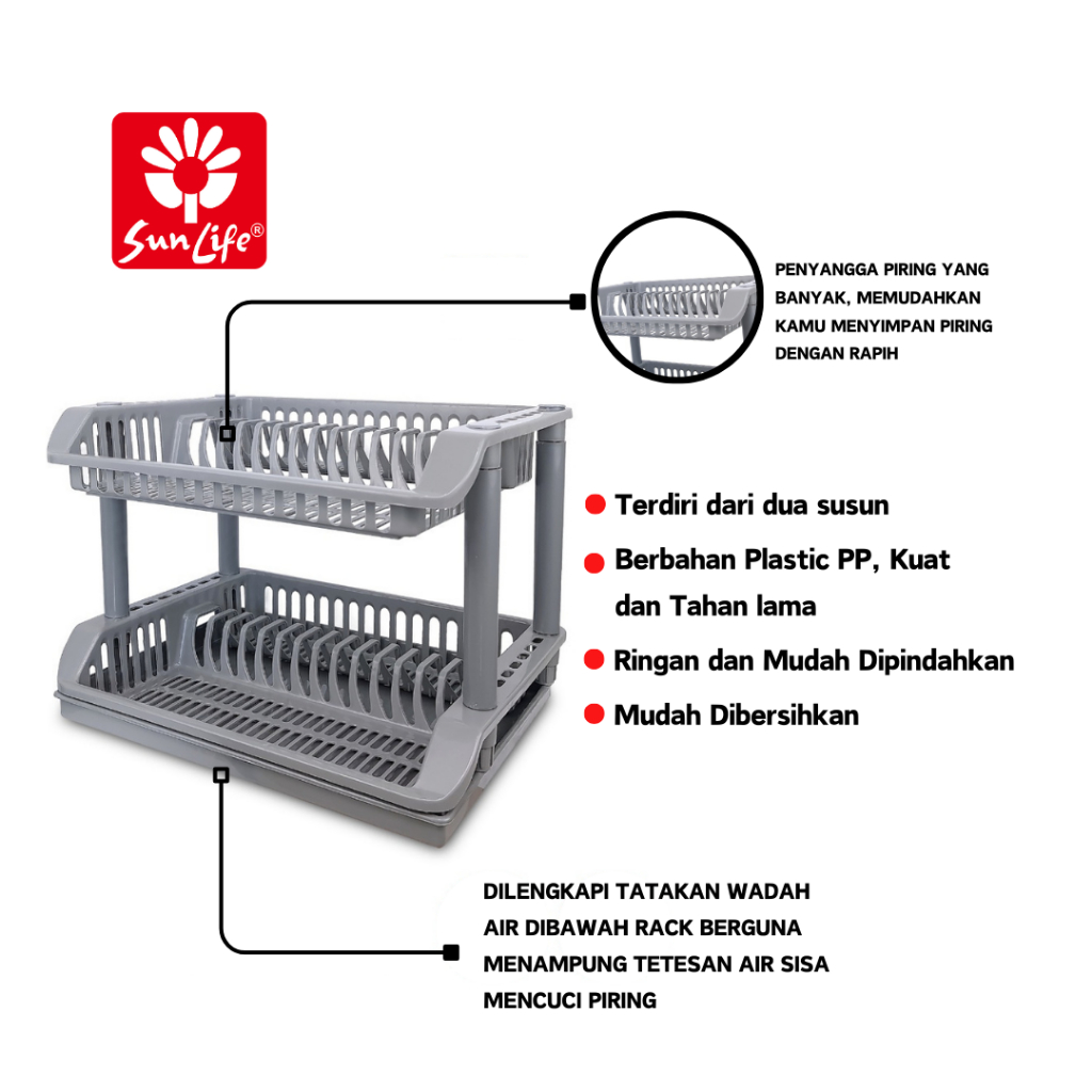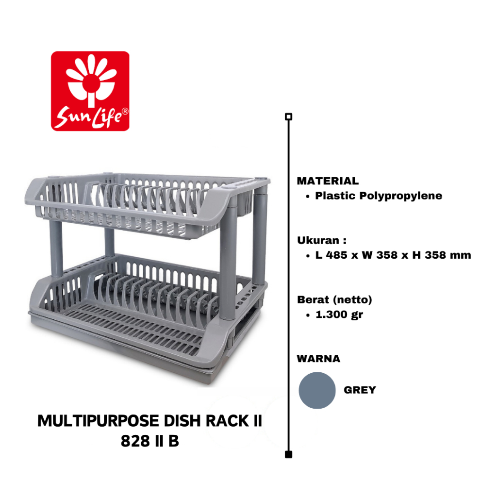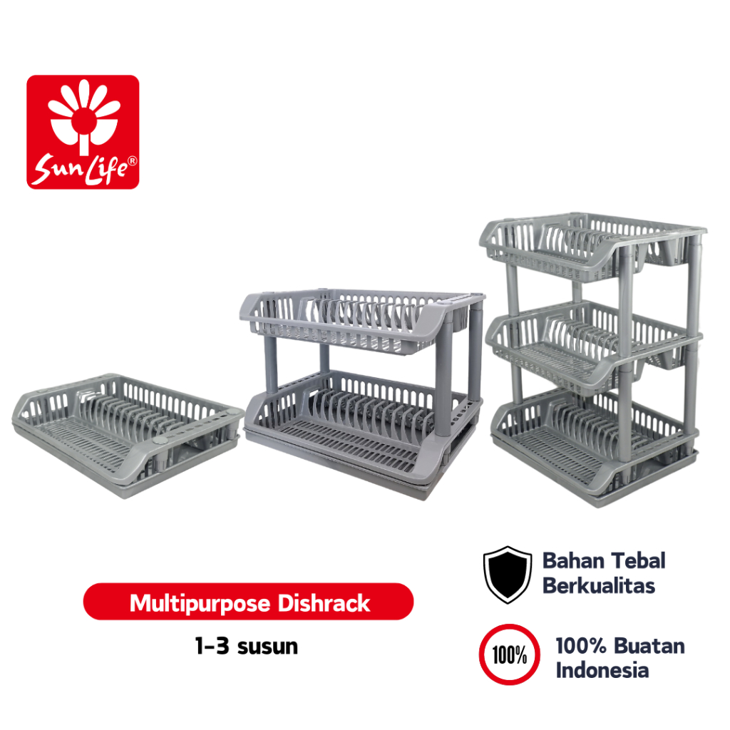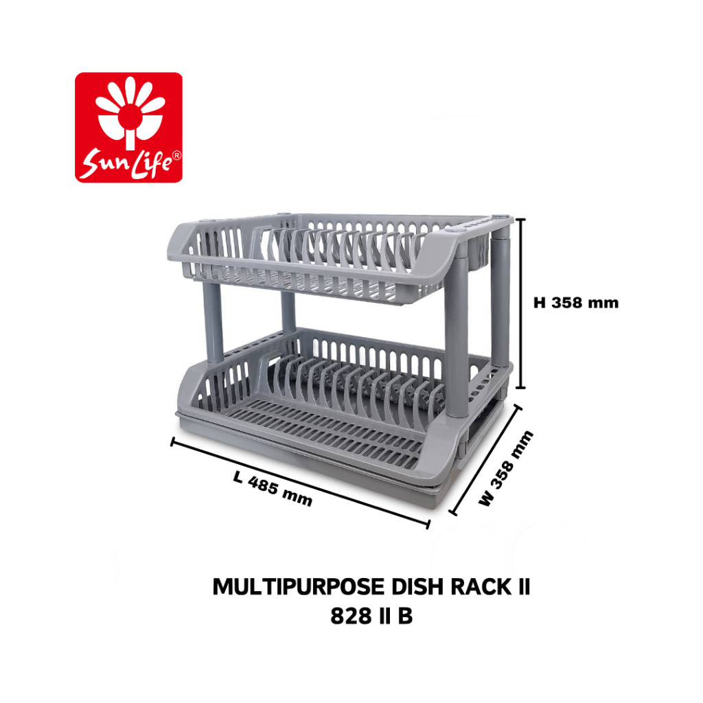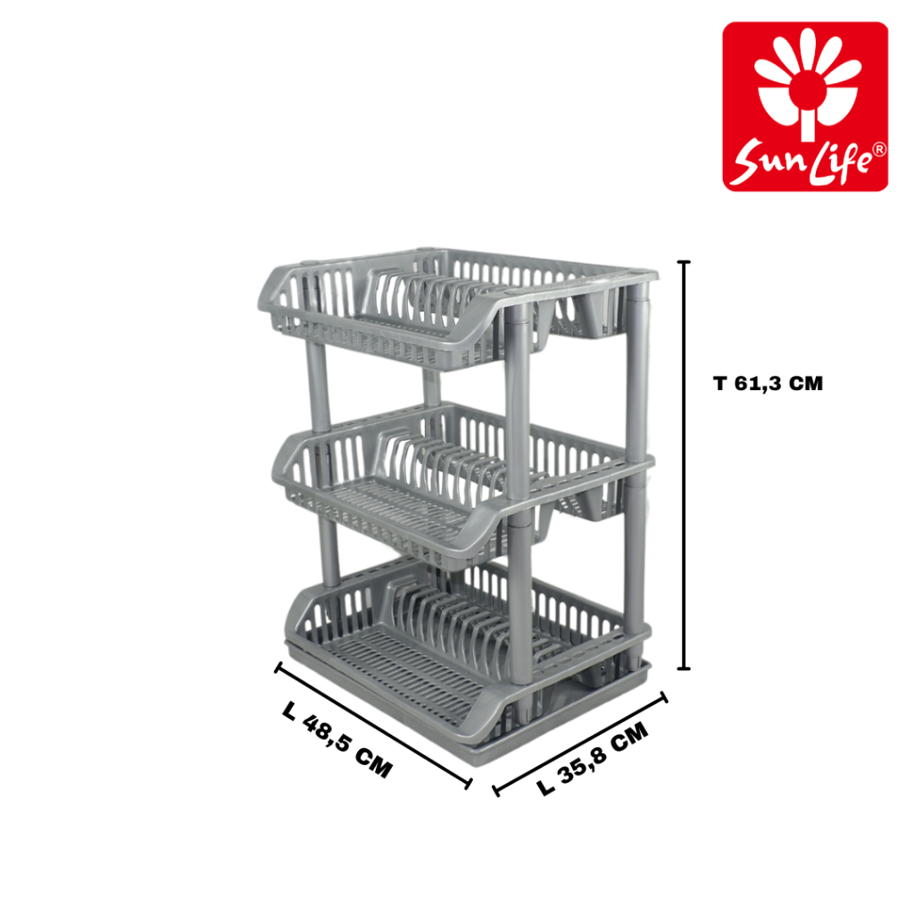 SunLife Multipurpose Dish Rack Rak Piring Plastik 1 - 3 Susun Dengan Nampan Rak Cuci Piring Serbaguna SNL-828-B-GREY