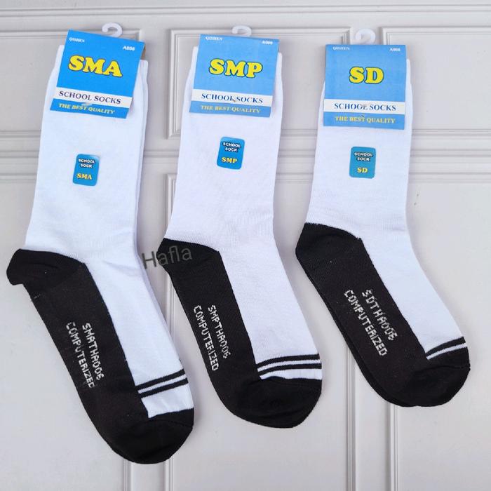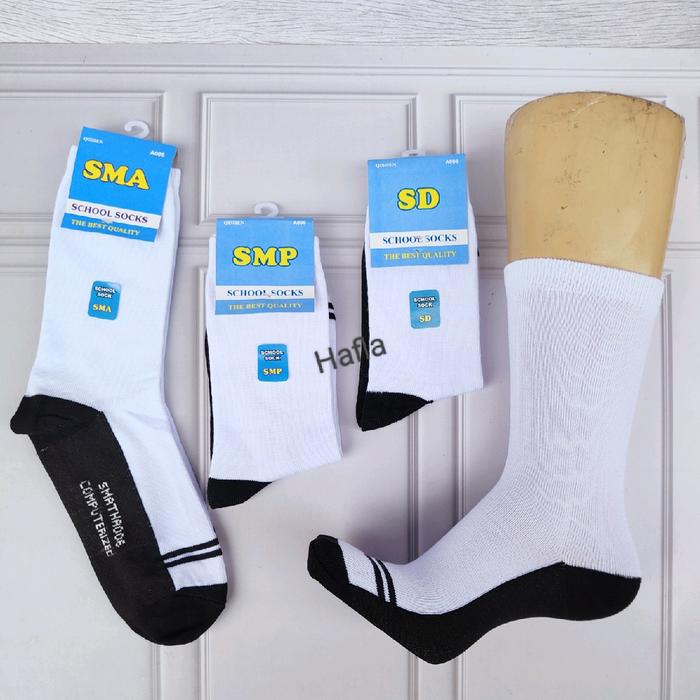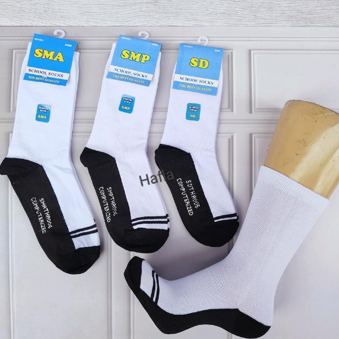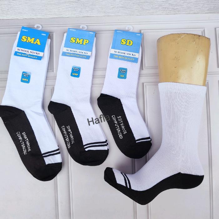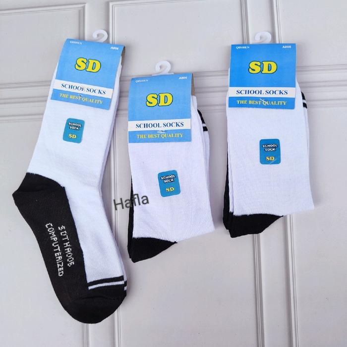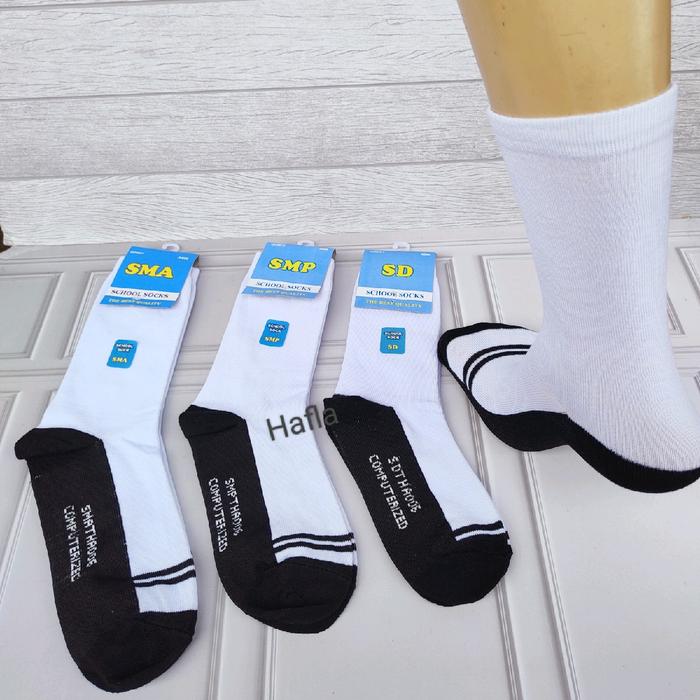 PAKET 12 PASANG KAOS KAKI ANAK SEKOLAH PUTIH TELAPAK HITAM PANJANG SEBETIS TEBAL LEMBUT NYAMAN KATUN - SD, 12 PASANG