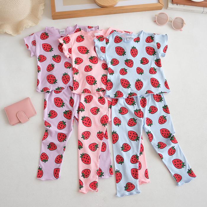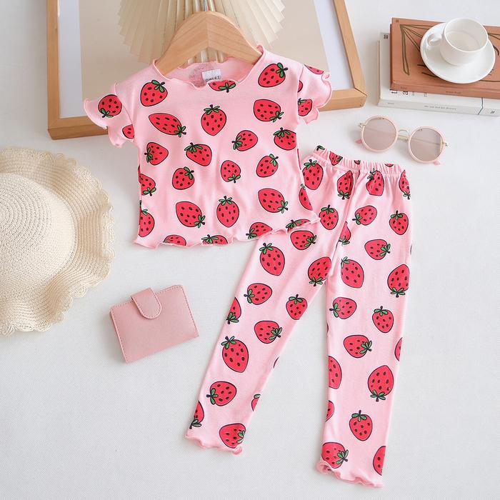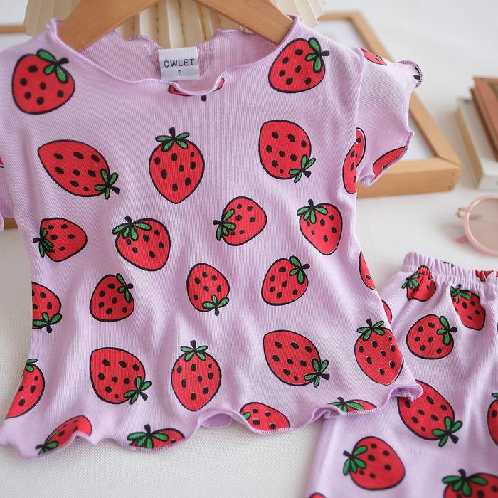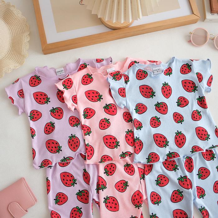 OWLET - SETELAN ANAK PEREMPUAN / BAJU ANAK PEREMPUAN / SETELAN ANAK SALUR / SETELAN KNIT MOTIF 1-7THN CEWEK FASHION PARSEL - KNIT STRWBERRY PEACH, S