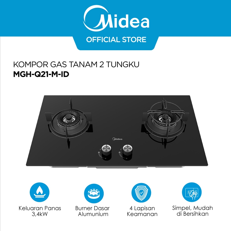 MIDEA Kompor Gas Tanam 2 Tungku 4 Lapis Kemanan – MGH-Q21-M-ID| Kaca Tempered Tahan Ledakan