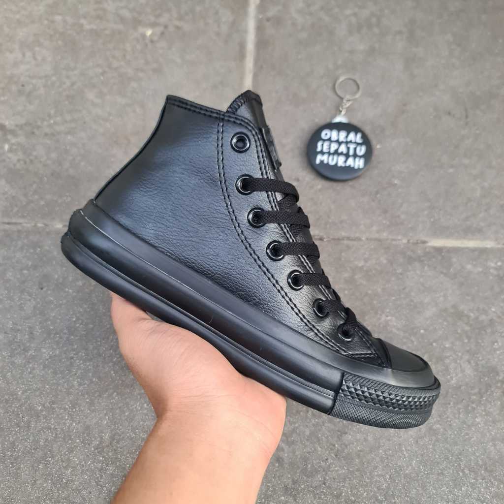 OBRAL SEPATU CONVERSE ALL STAR HIGH KULIT TRIPLE BLACK 38-43 SEPATU LEATHER