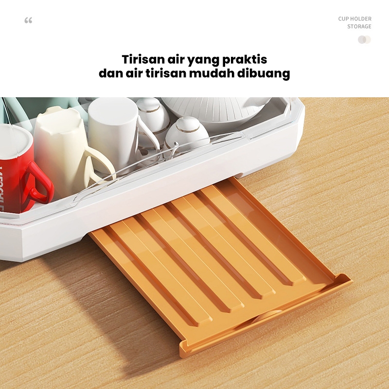 Dejavu Rak Pengering Air Mangkok Rak Piring Plastik Dengan Tutup Rak Piring Garpu Rak Dapur HLB402