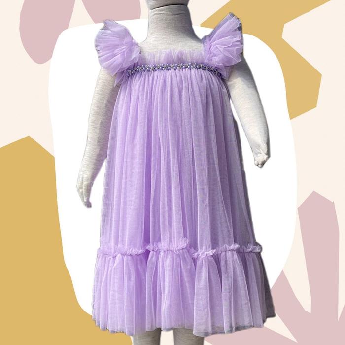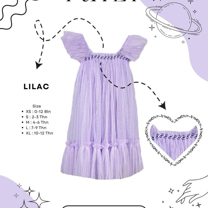 PO DRESS GAMAR MIX AZZIRA PAYET CANTIK TUTU FASHION - LILAC, XS 0-12 BULAN