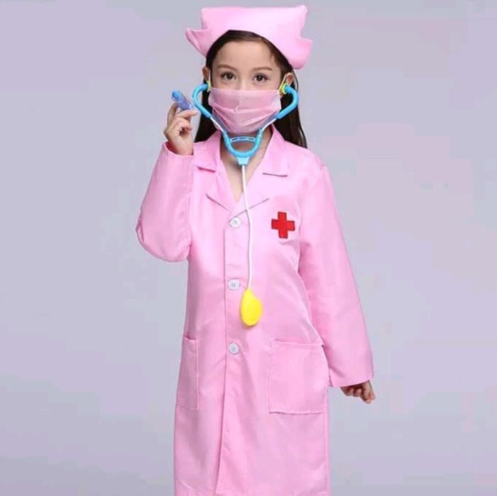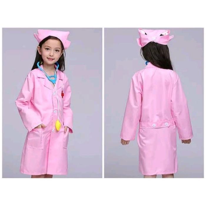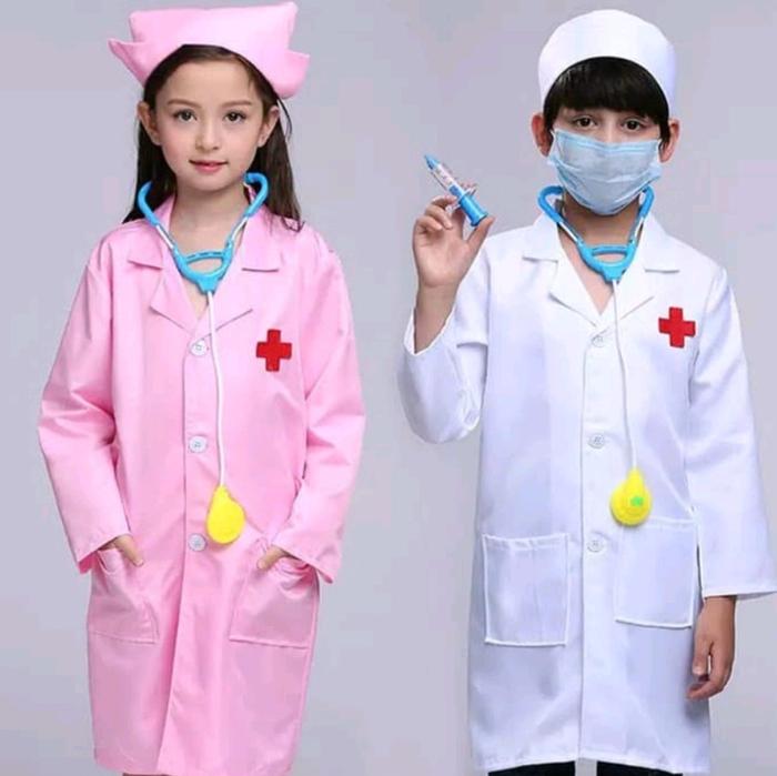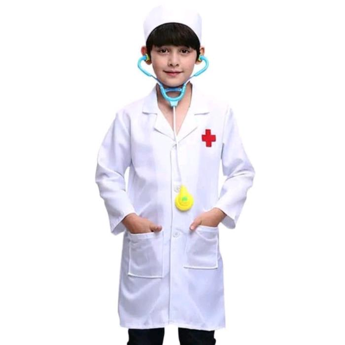 BAJU DOKTER KECIL ANAK PEREMPUAN/LAKI LAKI SET STETOSKOP SESUAI GAMBAR - PUTIH, 3-4 THN