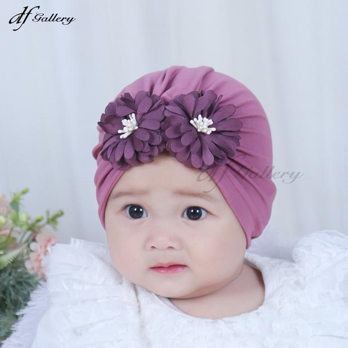 SET TURBAN BAYI PEREMPUAN 0 6 BULAN - 3 TAHUN | PREMIUM CANTIK & MENGGEMASKAN | MARSYA BY DFGALLERY - NAVY