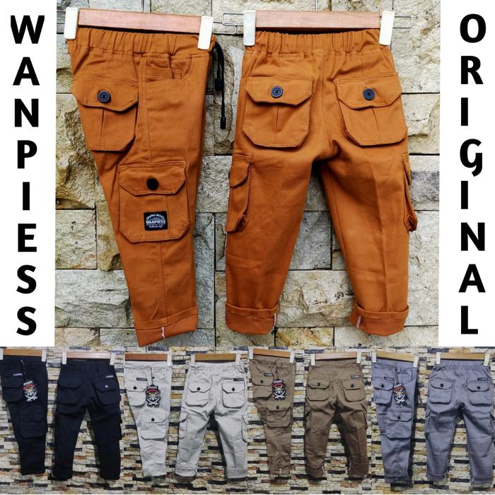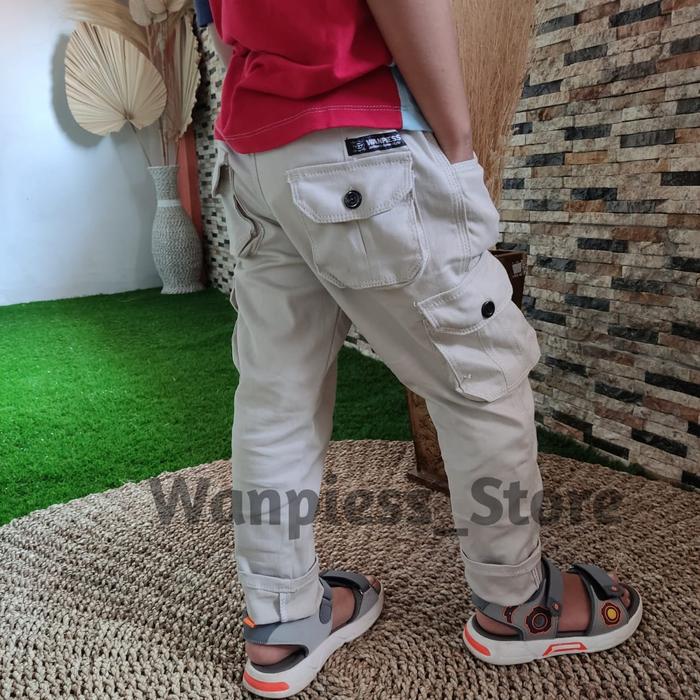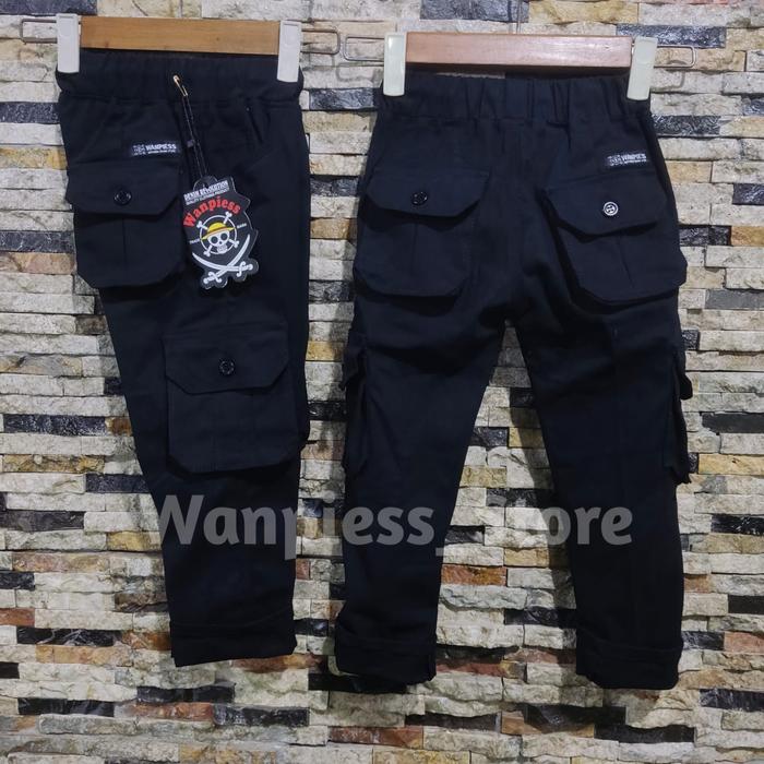 CELANA CARGO ANAK UMUR 1-13 TAHUN | KAIN TWILL STRECTH PREMIUM - HITAM, NO2 [1-2TH]