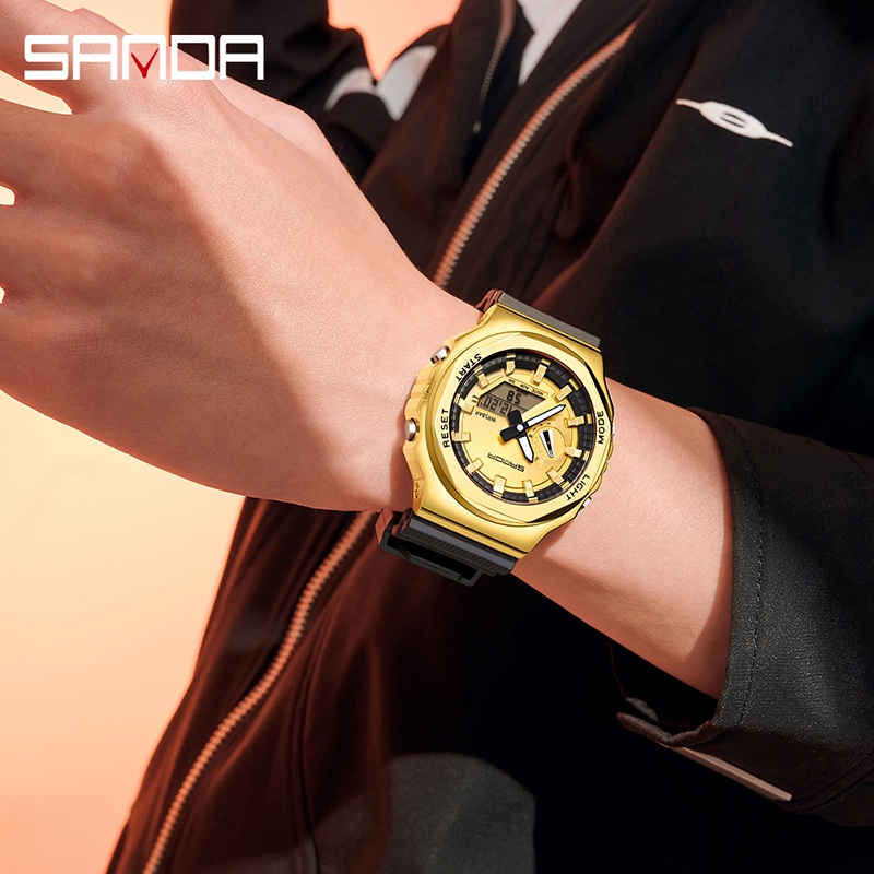 SANDA 3167 Jam Tangan Pria Wanita Digital Sport EL Backlight Tali Rubber Anti Air
