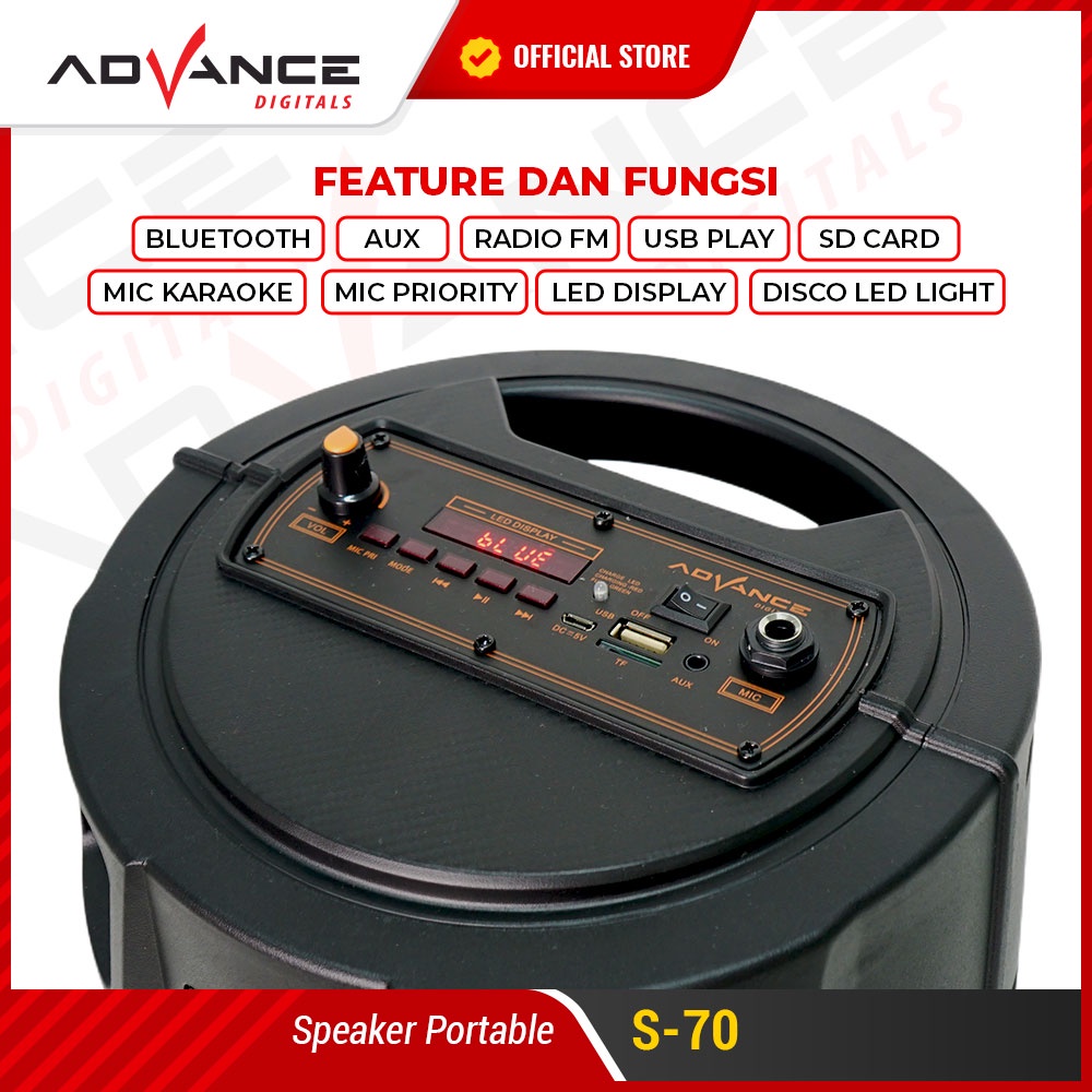 [Mall] speaker bluetooth advance s70 sound system salon aktif karaoke full bass free 2 mic